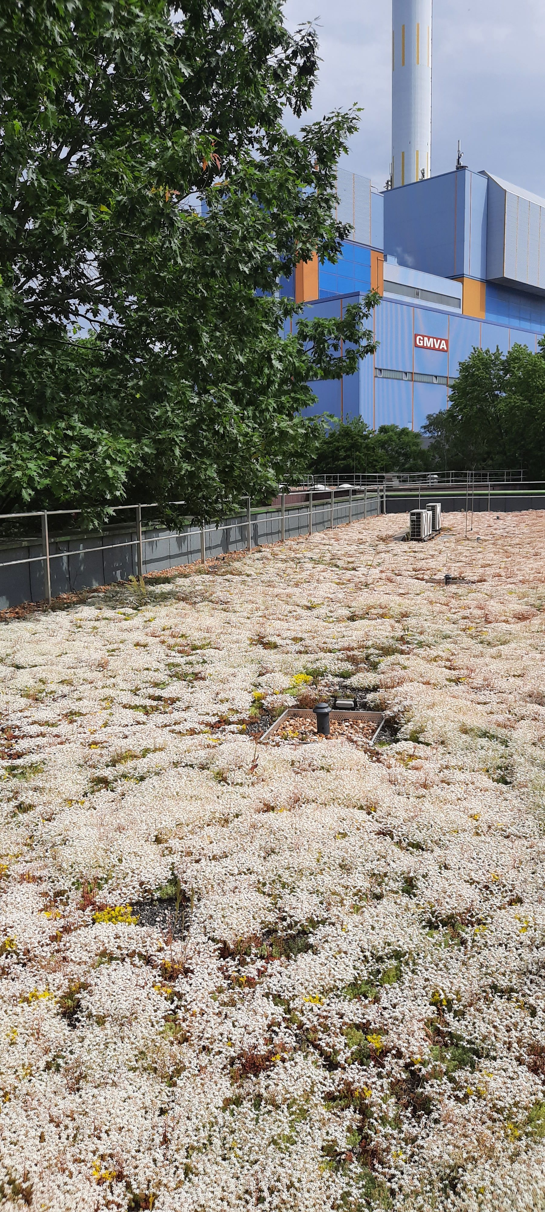 Bienen summen und es duftet wunderbar auf dem Dach des Verwaltungsgebäudes der GMVA - dank der Begrünung.