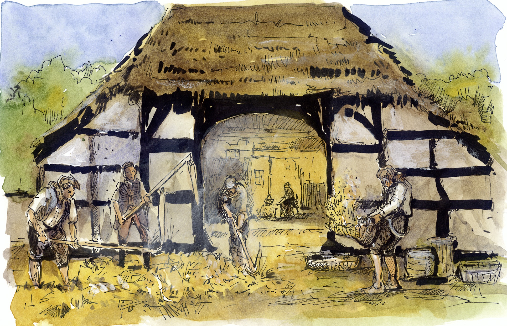 Bauern beim Dreschen im 18. Jahrhundert. Abbildung aus der Graphic Novel „Möser“ von Gaby von Borstel, Peter Eickmeyer und Thorsten Heese