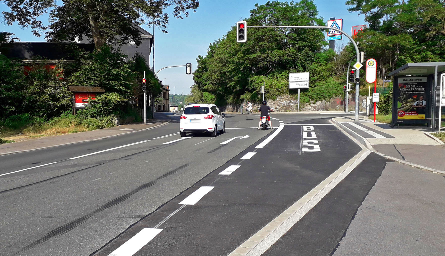 Erhöhte Bordsteine wie hier an der Bushaltestelle „Brinkhofstraße“ ermöglichen den barrierefreien Einstieg in den Bus.