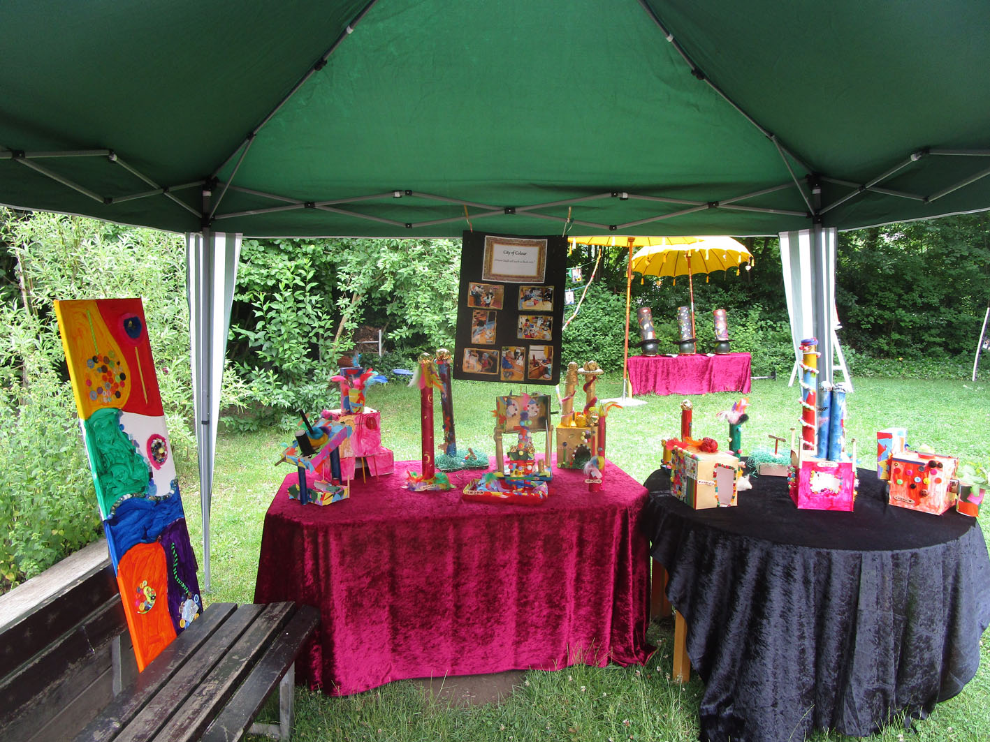 Der Garten von „Schloss Einstein“ wurde zum „Ausstellungsraum“ für die von Hundertwasser inspirierten Werke der Kita-Kinder.