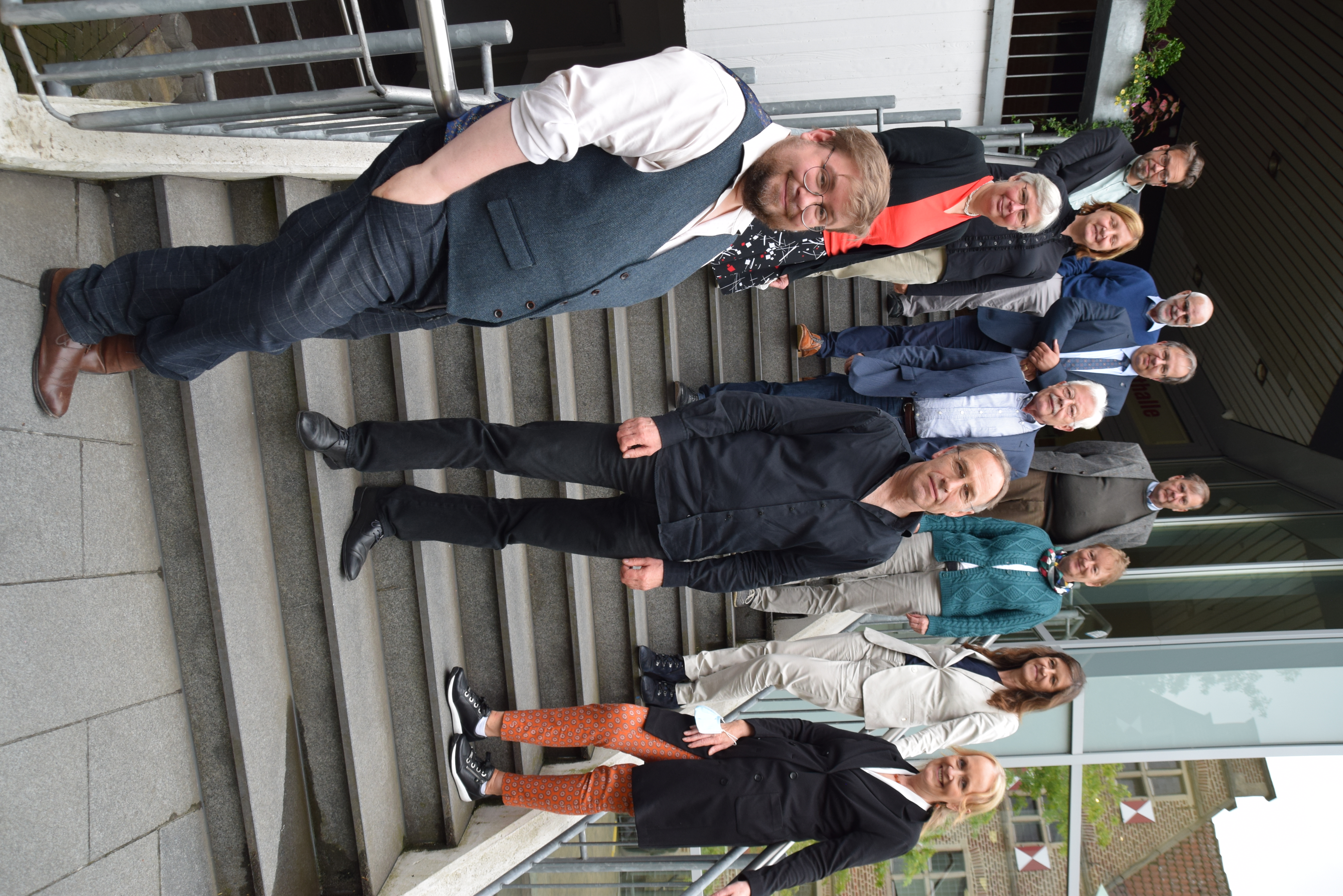 Die Herausgeber, Beiratsmitglieder und Auftraggeber des Projekt Stadtgeschichte Borken 2025. Links von unten nach oben: Prof. Dr. Hiram Kümper, Dr. Mechthild Black-Veldtrup, Renate Volks, Prof. Dr. Malte Thießen; Mitte von unten: Dr. Norbert Fasse, Dr. Werner Frese, Dr. Volker Tschuschke, Prof. Dr. Wilfried Reininghaus; rechts von unten: Bürgermeisterin Mechtild Schulze-Hessing, Fachbereichsleiterin Monika Nagel, Ingeborg Höting, Dr. Timothy Sodmann (Foto: Thomas Hacker, Stadtarchiv Borken)
