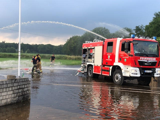Auf der Grenze Barlo / Winterswijk trat ein Bach über die Ufer und drohte die Häuser zu überfluten. Feuerwehr und THW waren bis in die frühen Morgenstunden im Einsatz.