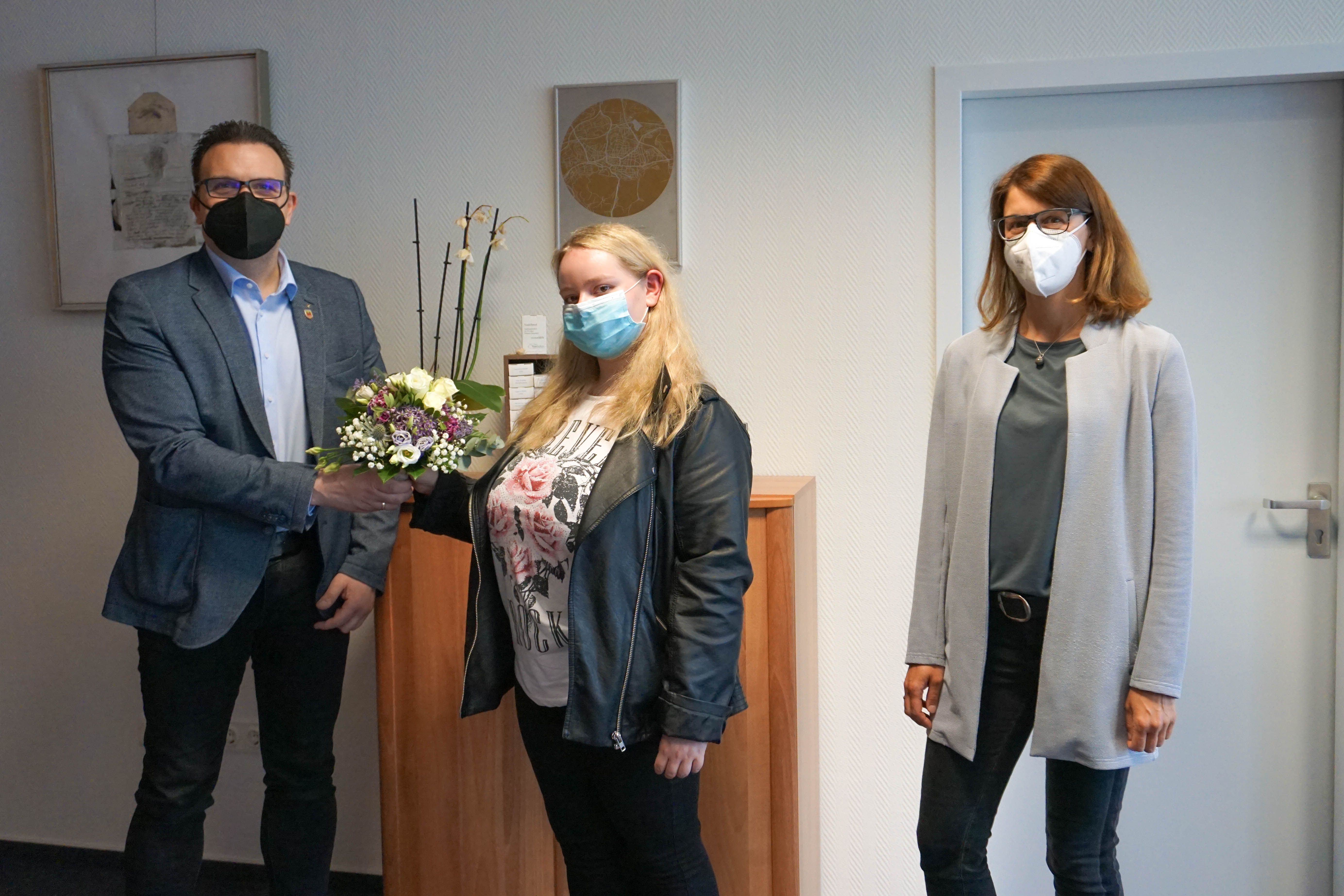 Gratulierten Doreen Mielcarski (Mitte) zu Ihrem Erfolg: Bürgermeister Michael Joithe und Carmen Malkus.