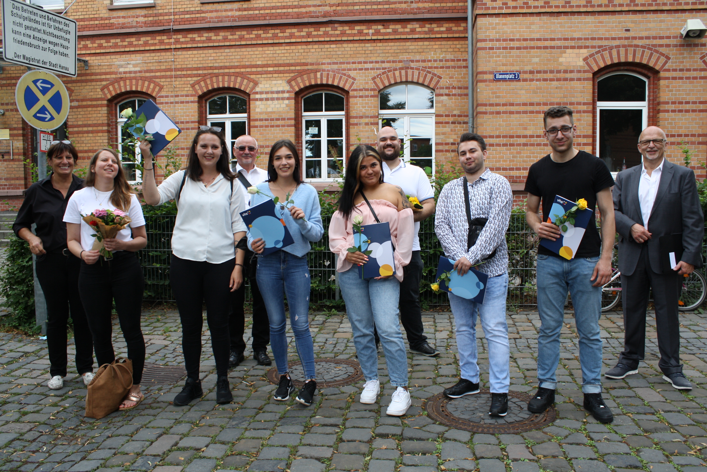 Die Absolventinnen und Absolventen des arbeitsbegleitenden Abendkurses "Hauptschulabschluss"