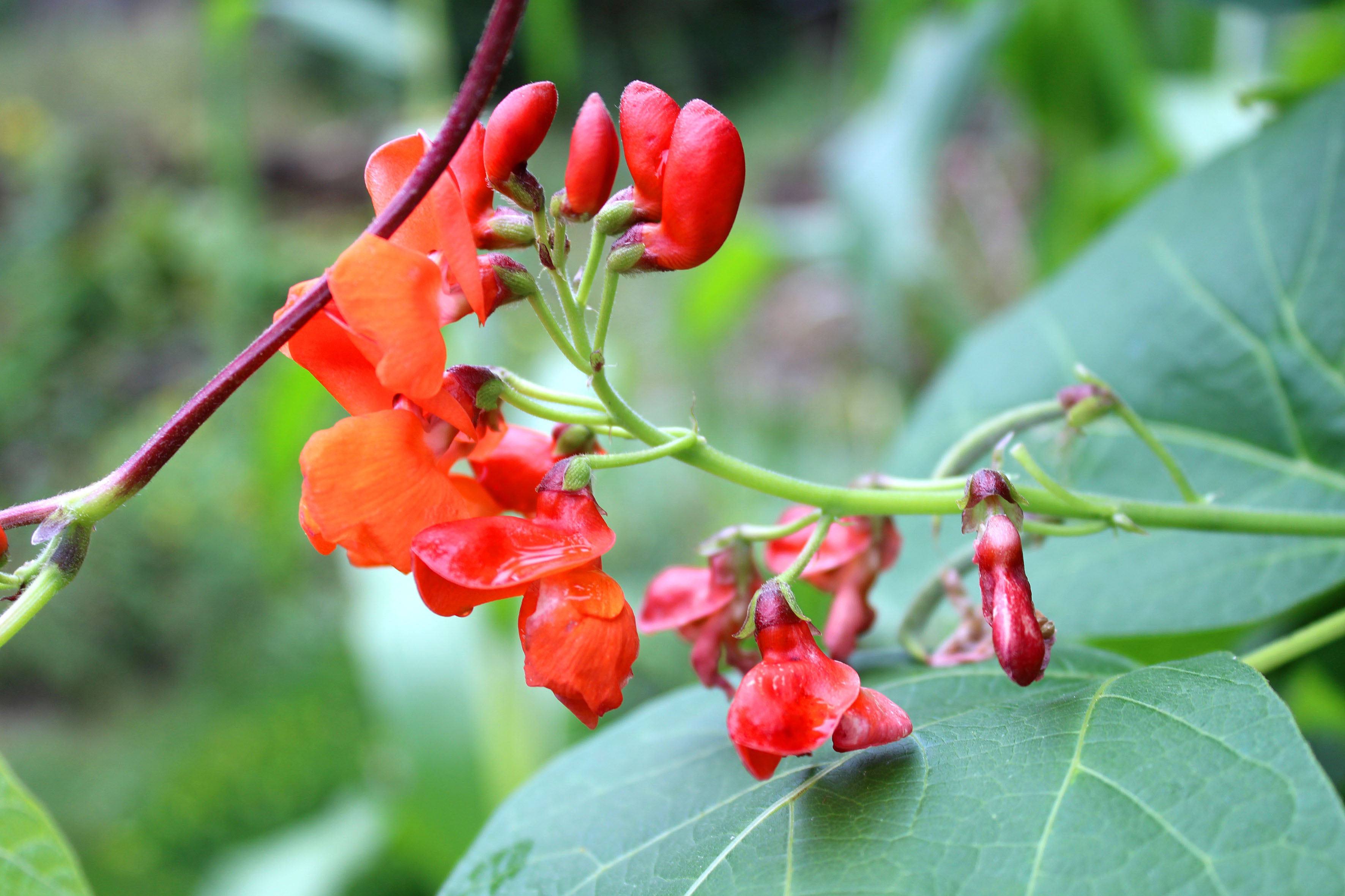 Eine Feuerbohne im Naturgarten des Museums am Schölerberg. Namensgeber ist ihre leuchtend rote Blüte.