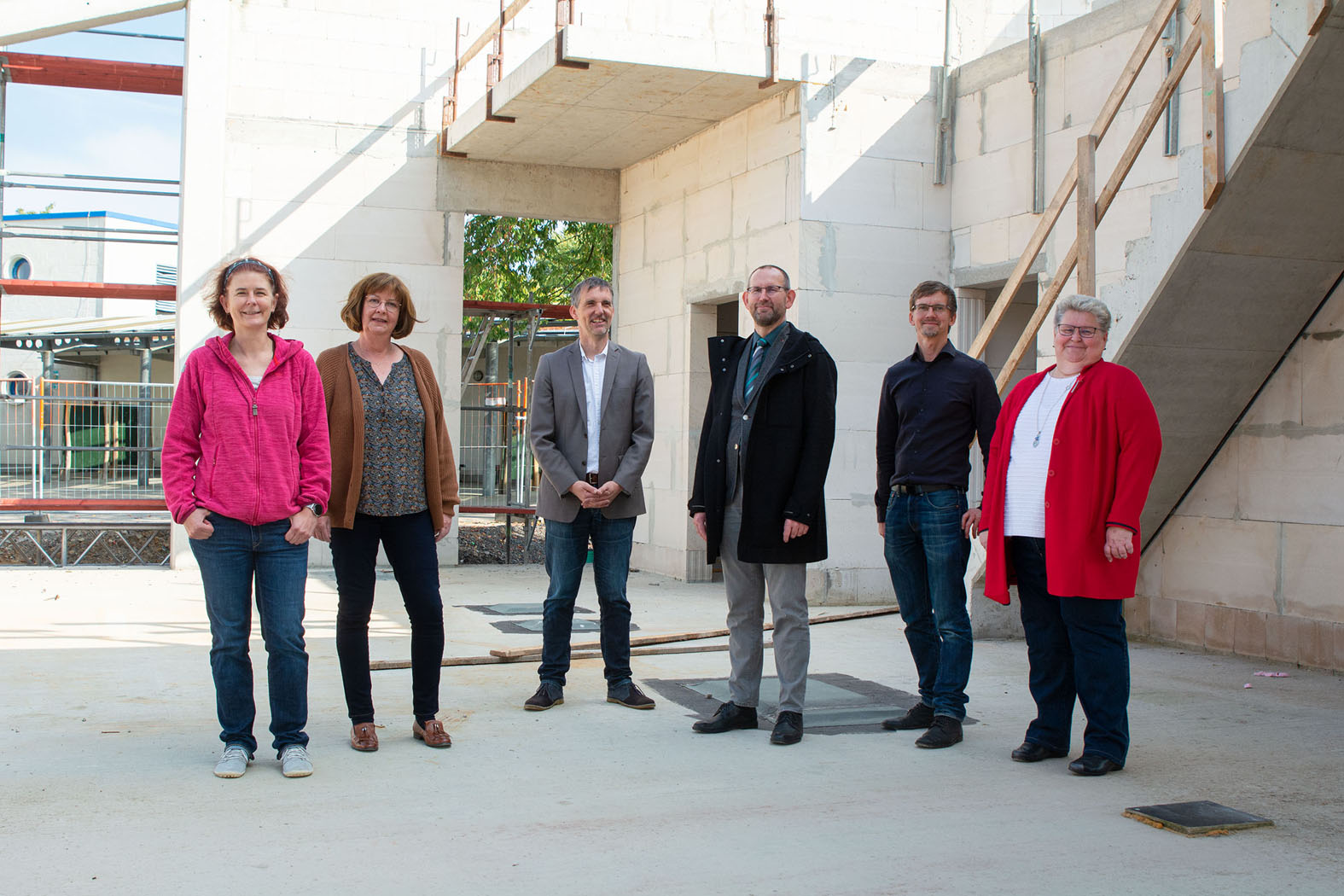 Besuch auf der Baustelle an der Grundschule Auf der Emst (v.l.): Nicoline Edelhoff, Annette Hofmann, Martin Stolte, Thorsten Grote, Markus Balk und Claudia Zawada.