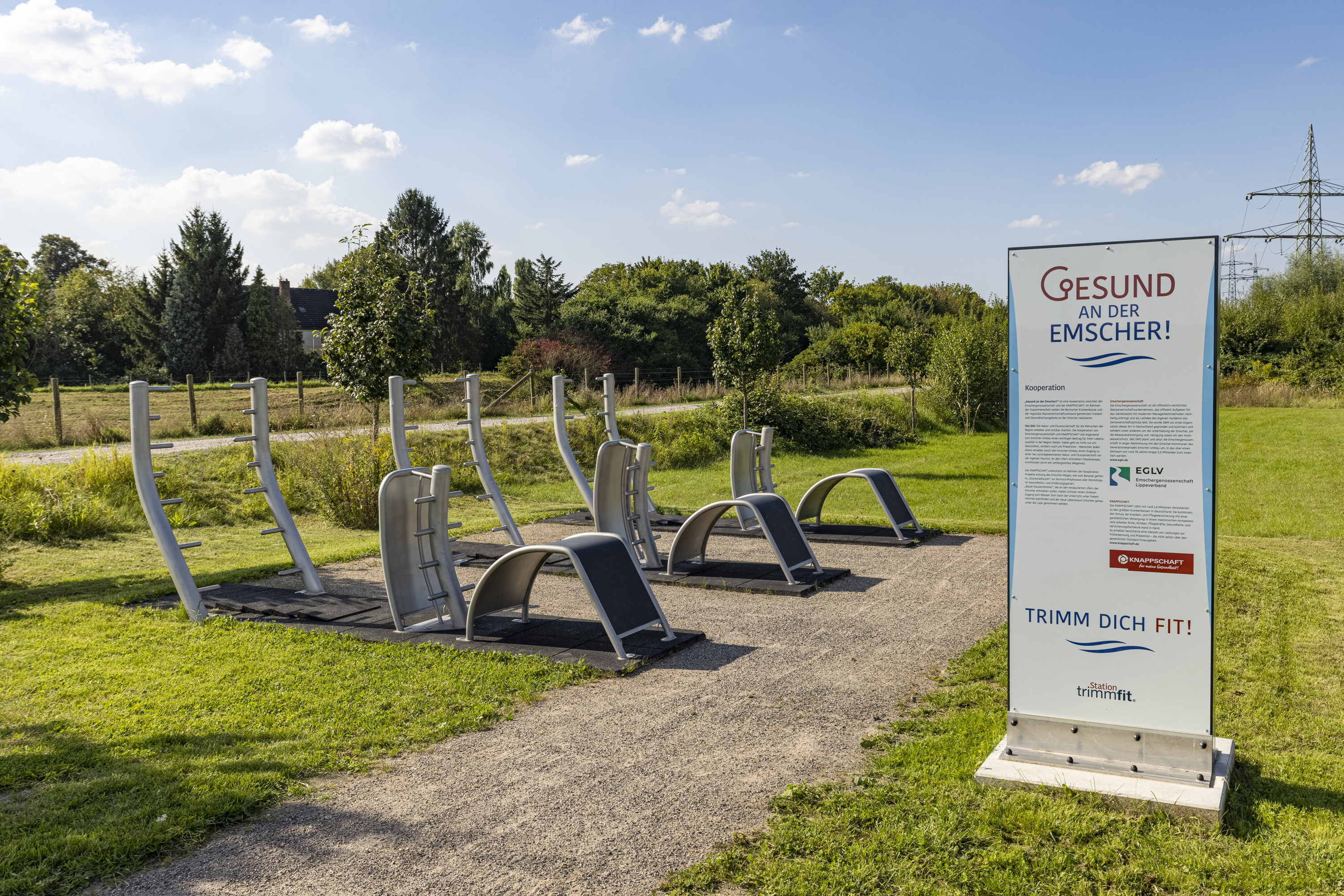 An den Geräten der Bewegungsinseln an den vier Emscher-Höfen können sich die Menschen aus dem Emscher-Raum fit halten.