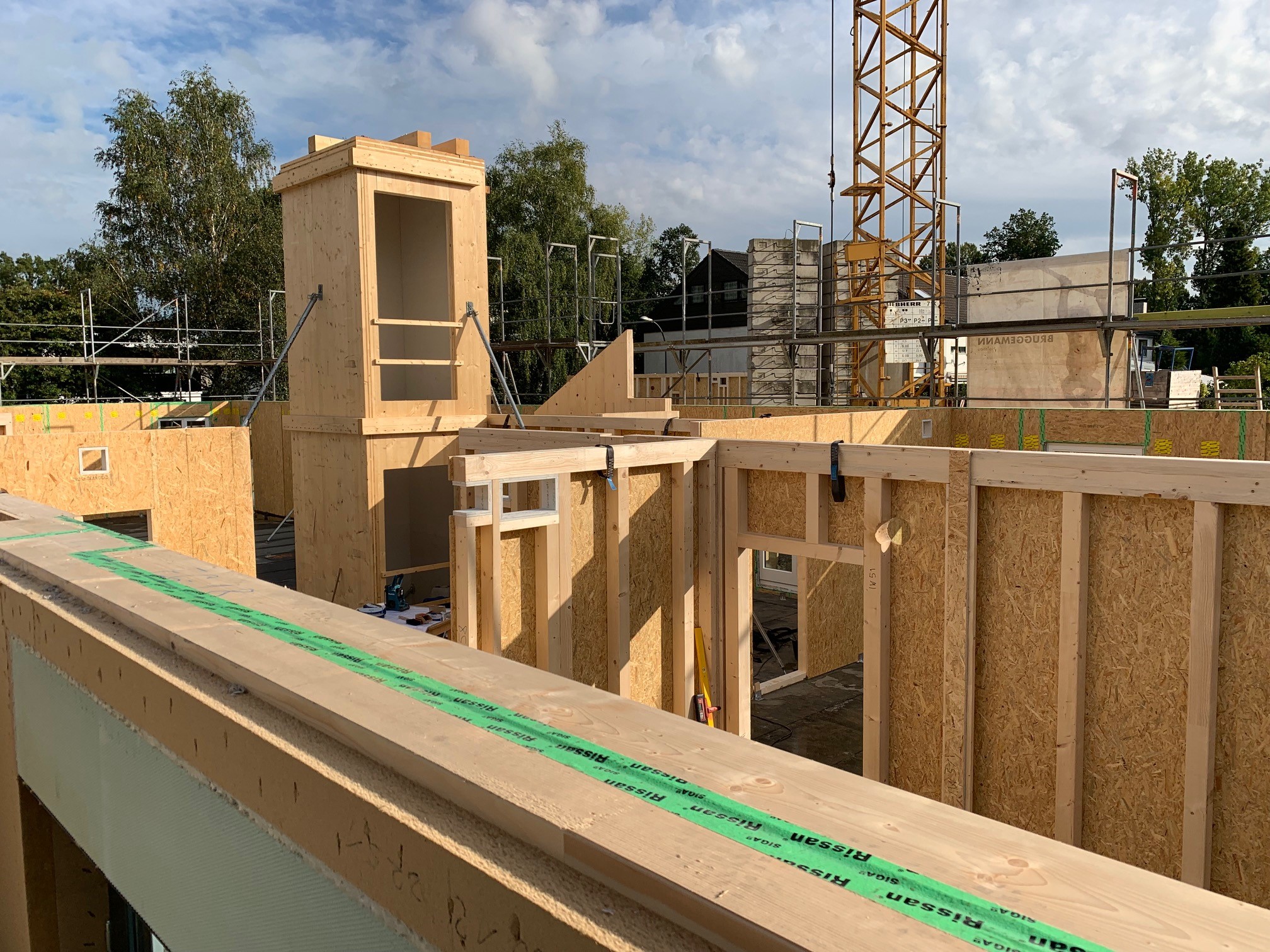Die Kita am Jeggener Weg errichtet die Stadt in modularer Holzbauweise. So entsteht ein Geschoss pro Woche. In der kommenden Woche geht es schon bei der Kita An der Wakhegge weiter.