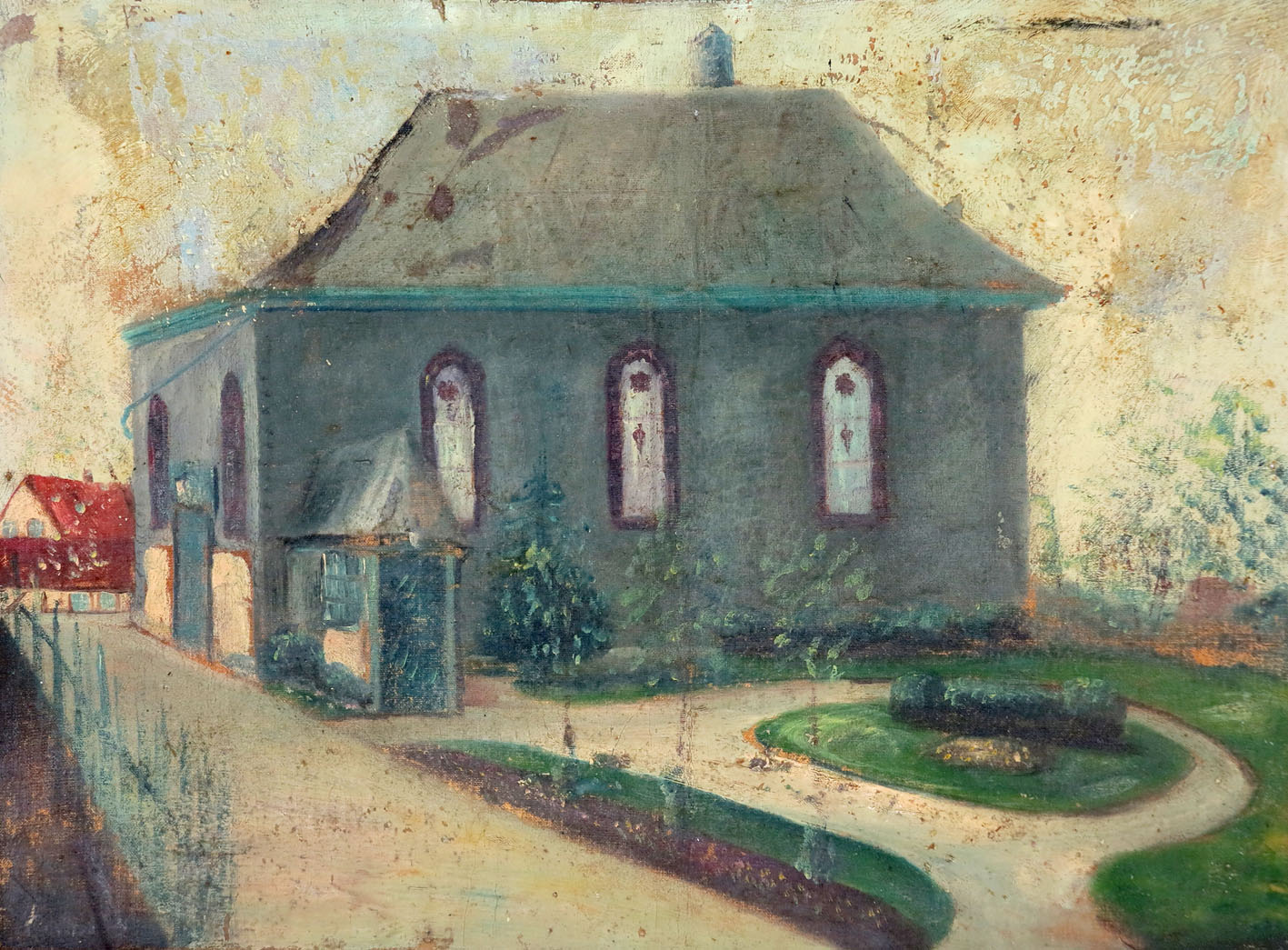 Synagoge der jüdischen Gemeinde Iserlohn, Ansicht von der Mendener Straße, um 1910/30, undatiertes und unsigniertes Ölgemälde (Stadtarchiv Iserlohn).