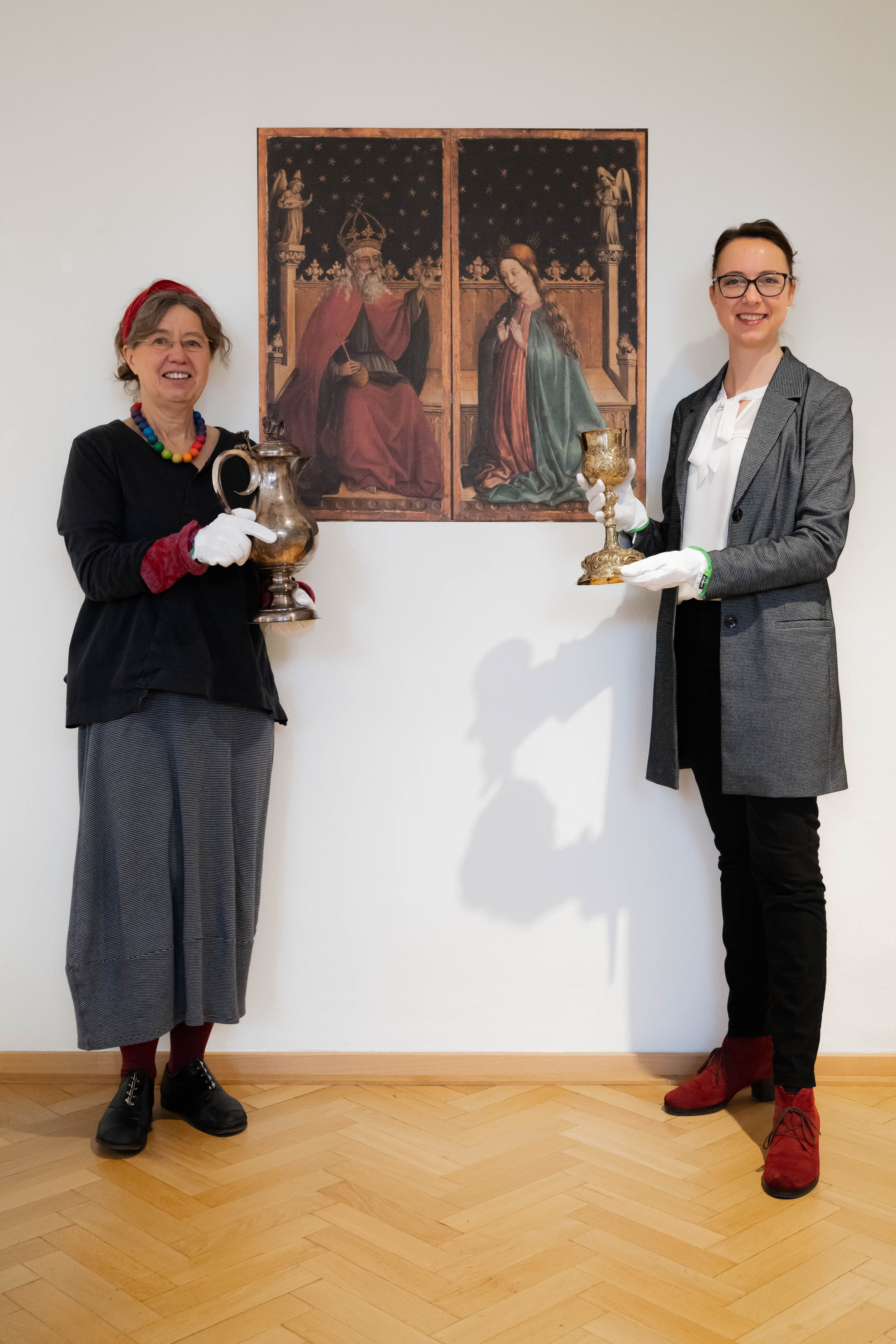 Pfarrerin Brigitte Zywitz (l.) und Dr. Sandra Hertel laden zum Besuch der Ausstellung ins Stadtmuseum ein