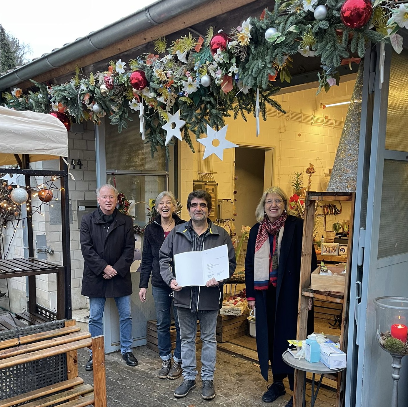 v. l. Leiter der Kommunalen Arbeitsförderung Carsten Höhre, Bettina Schadow, Inhaber Joaquim Barbosa, Bürgermeisterin Ilona Friedrich