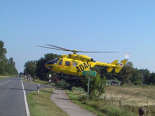 Eine schwer verletzte Person wird mit dem Hubschrauber abtransportiert