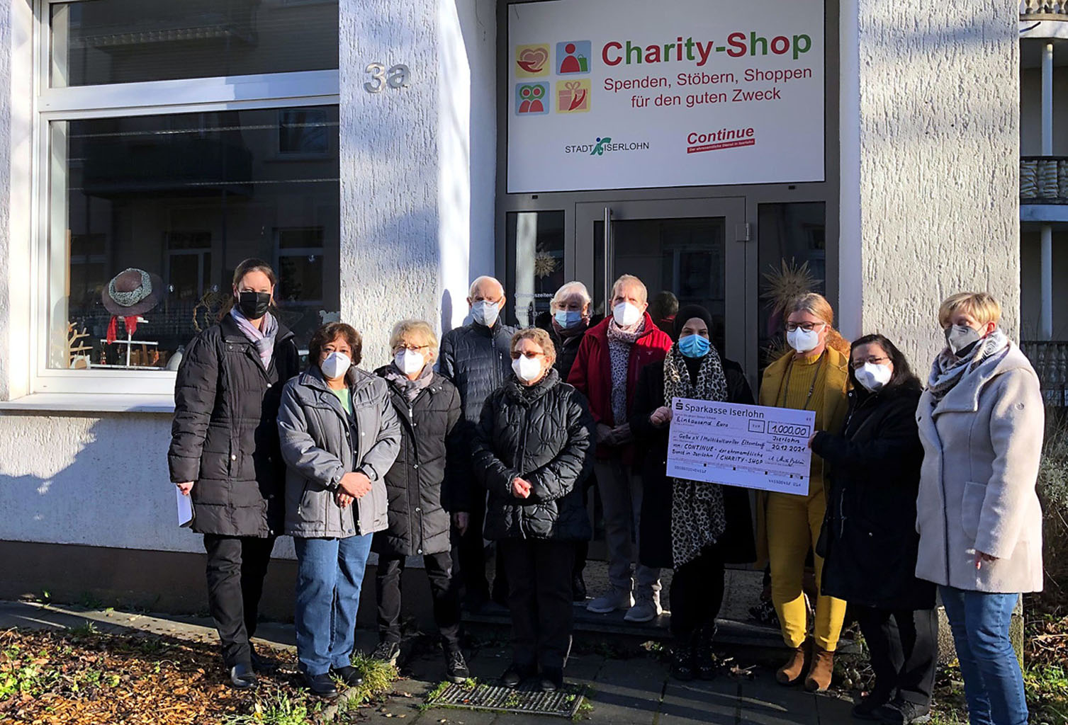 Koordinatorin Nicole Behlau und die Continue-Mitarbeiter Germaine Bödingmeier, Ingrid Riediger, Fritz Kommorowski, Elisabeth Wenzel, Renate Kommorowski und Waltraud Marquardt übergaben den Spendenscheck an Nawat Omar (Elterntreff), Melani Kaiser, Bahriye Ulrich (Elterntreff) und die 2. Vorsitzende des GeBu e.V. Britta Hüttenhein (v.l.).