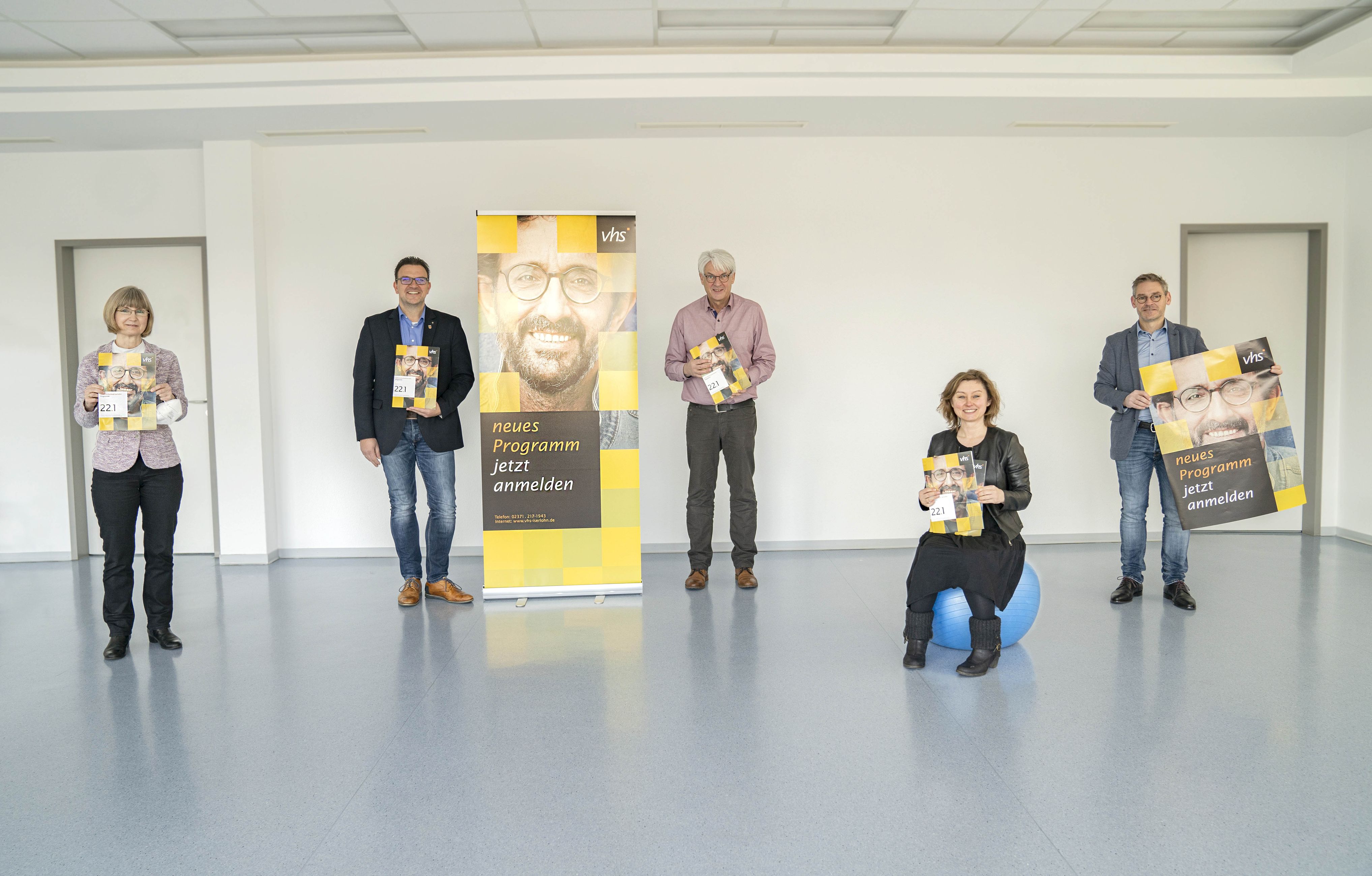 Bürgermeister und Kulturressortchef Michael Joithe (2.v.l.) stellte gemeinsam mit Claudia Weigel, VHS-Leiter Rainer Danne, Verwaltungsleiterin Karina Wiedemeyer und Frank Finkeldei (v.l.) das Programm für das Frühjahrssemester 2022 vor.