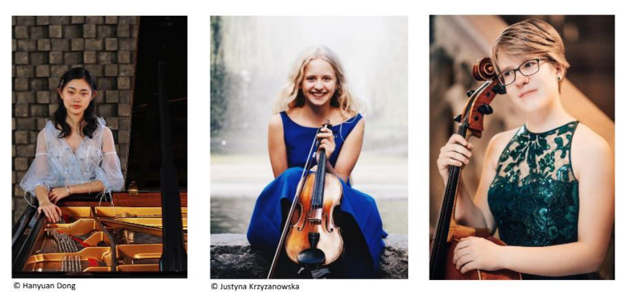 Xinyue Gao, Nicole Biegniewska und Lea Reutlinger (v.l.) musizieren am Sonntag in der Trillingschen Villa