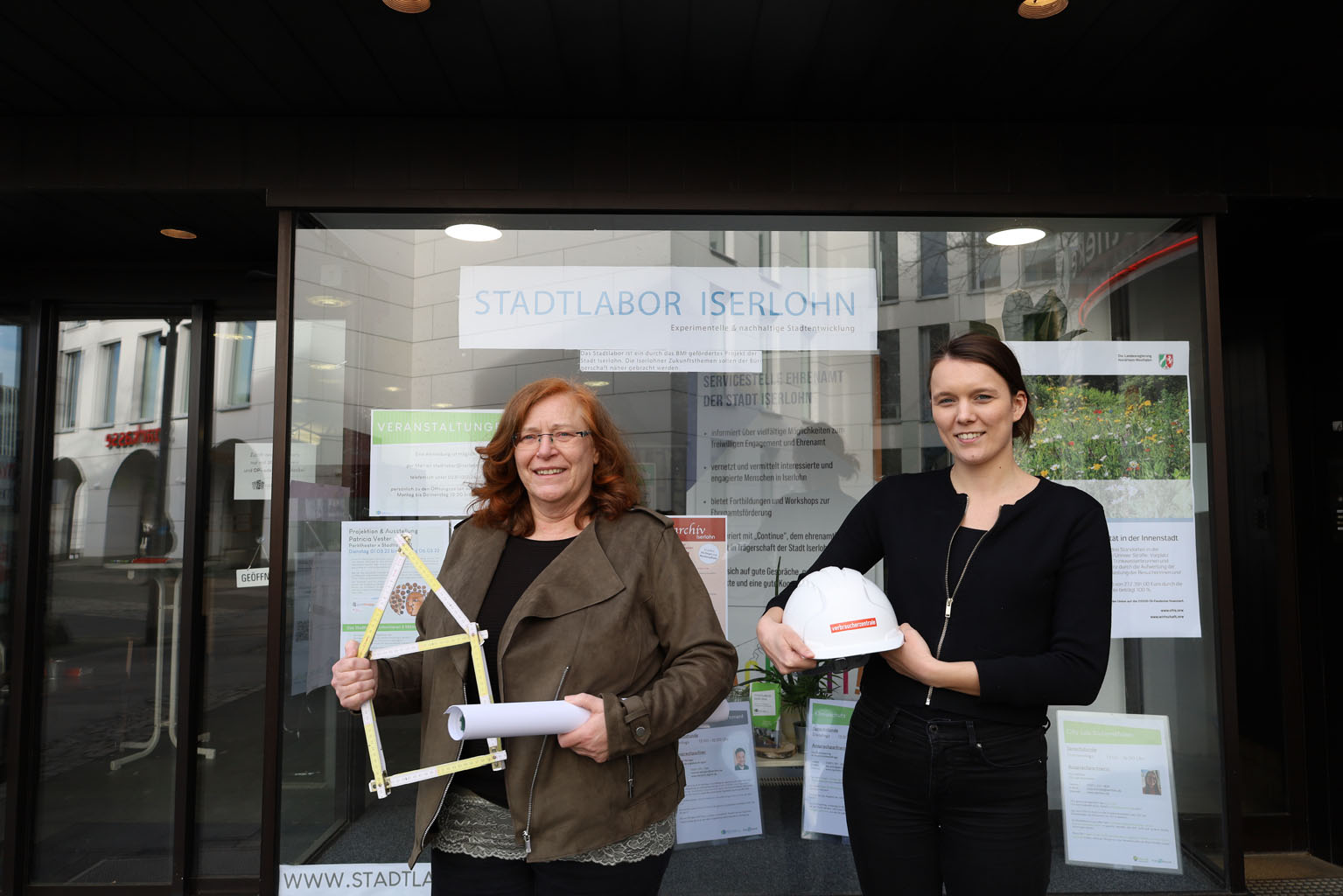 Birgit Stracke (Verbraucherzentrale NRW, li.) und Lea Schnippering (zuständig für Klimaschutz bei der Stadt Iserlohn) werben für den Sanierungsworkshop für Frauen.