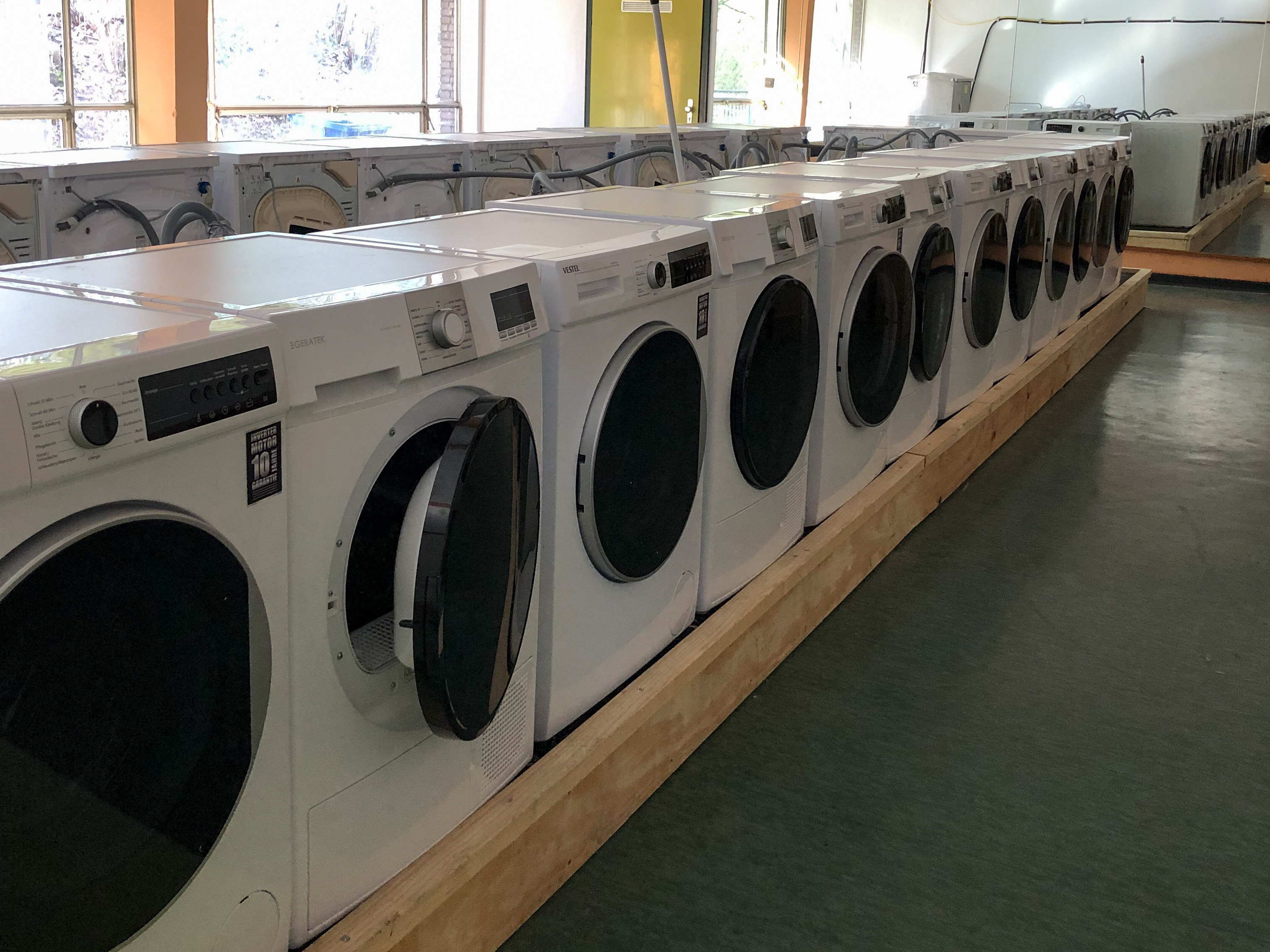 In der Flüchtlingsunterkunft in der ehemaligen Käthe-Kollwitz-Schule stehen die Waschmaschinen bereit.