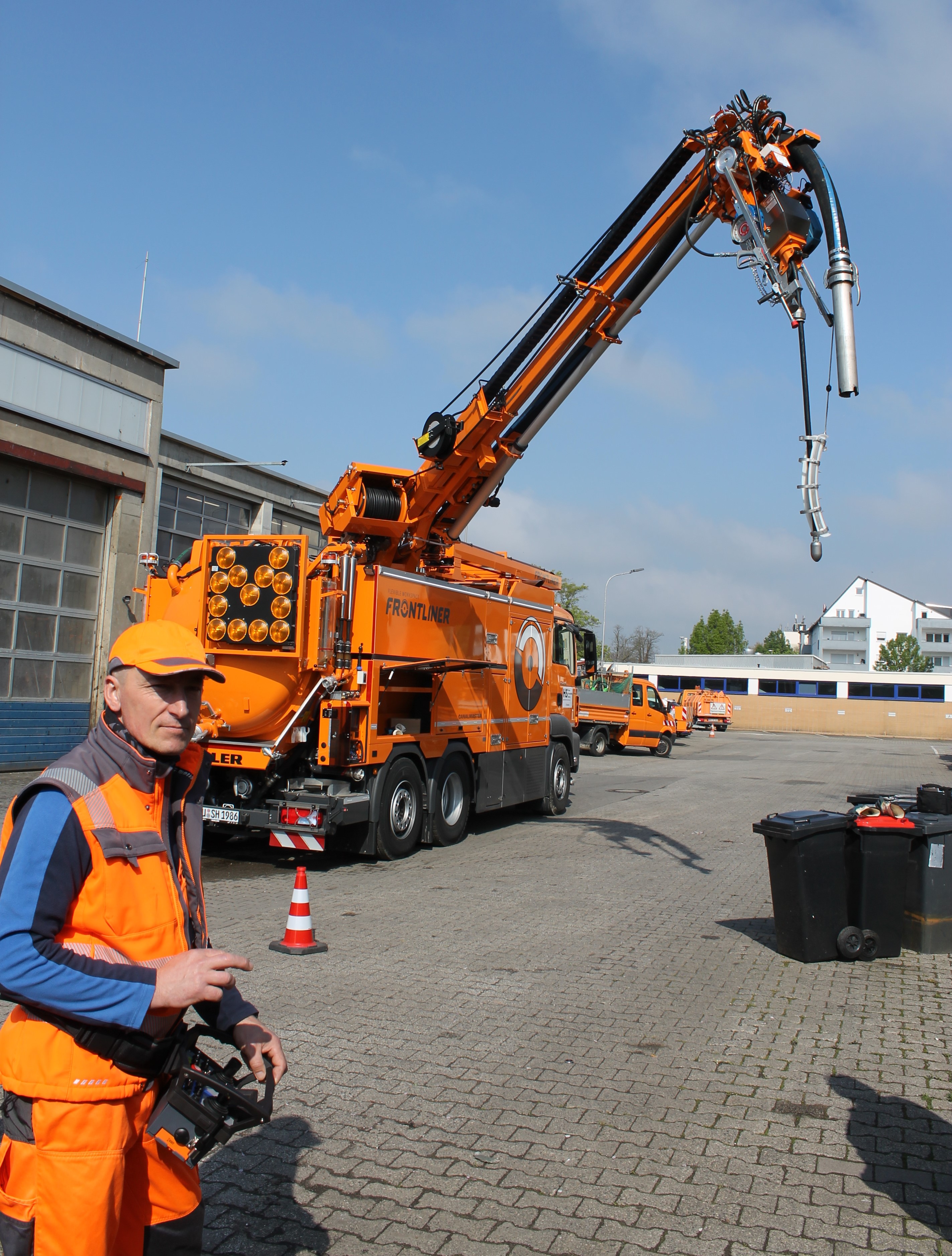 Der große Verschwenkradius hilft, im Straßenraum beispielsweise bei fließendem Verkehr mit dem Spülwagen nicht direkt neben dem Kanalschacht stehen zu müssen.