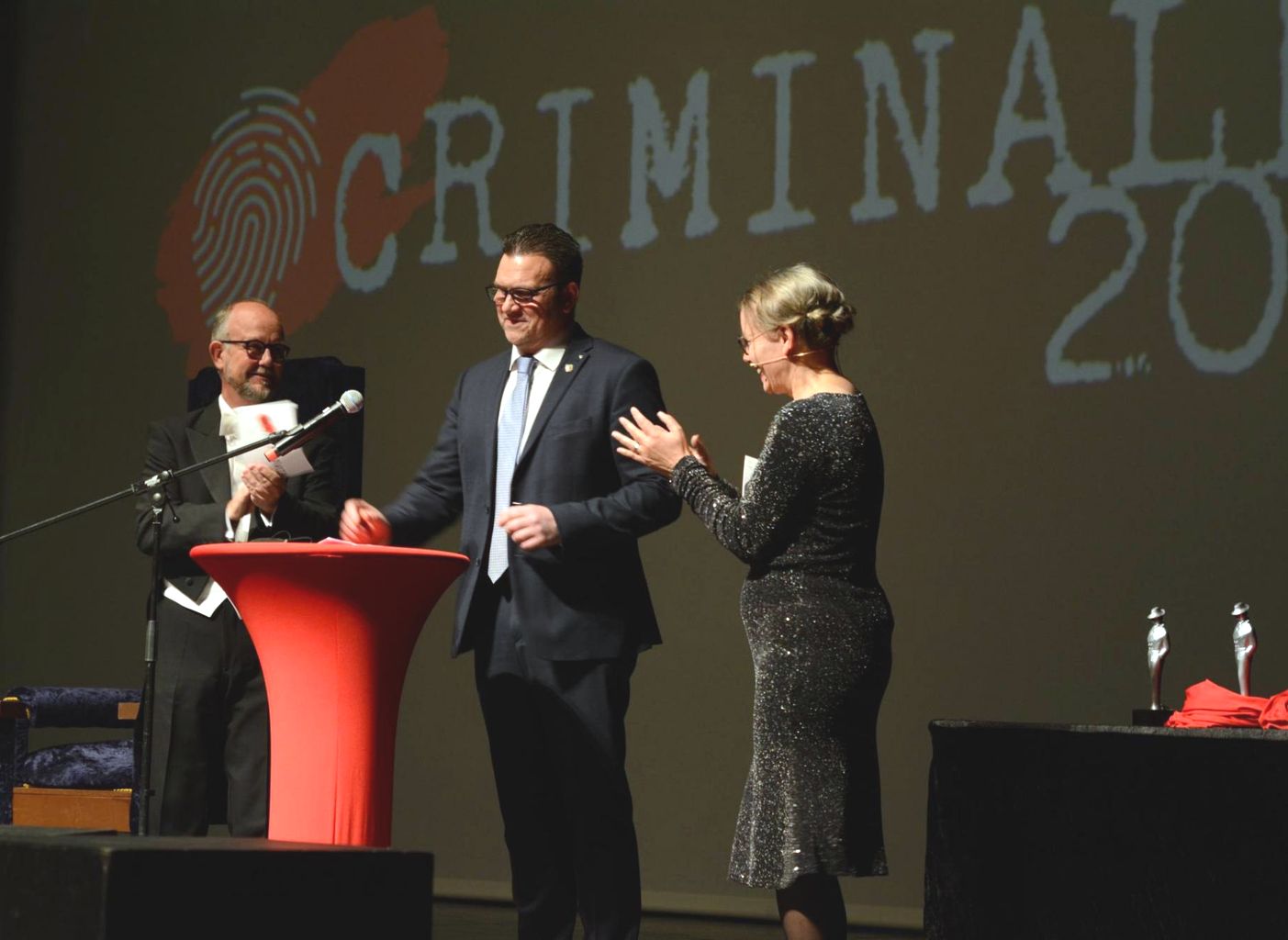 GLAUSER-Preisverleihung im Parktheater Iserlohn: es führten durch den Abend Sandra Lüpkes (r.) und Ralf Kramp (l.), Bürgermeister Michael Joithe begrüßte das Publikum