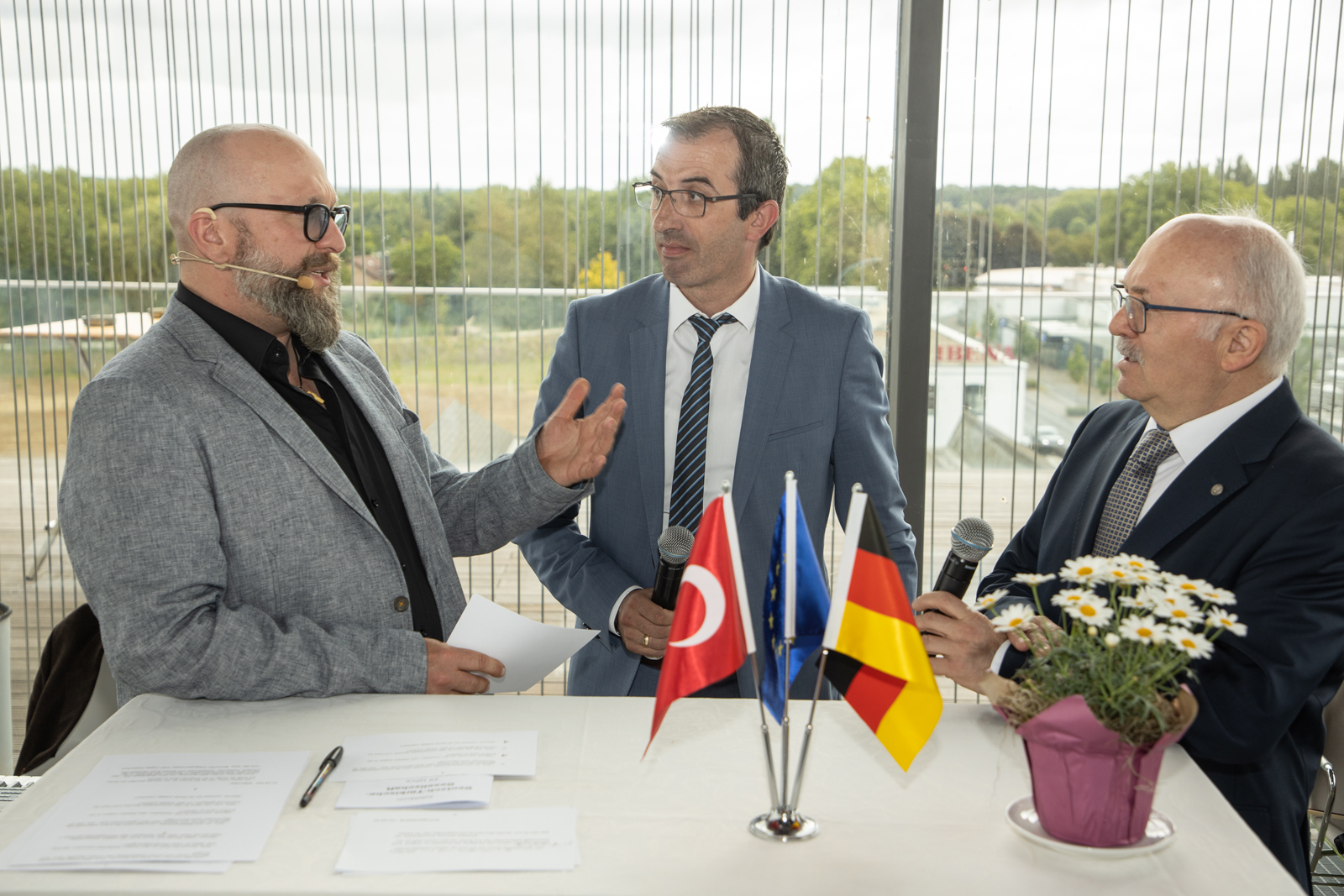 Raimund Stroick im Gespräch mit Juan Lopez Casanava, dem Vorsitzenden des Integrationsrates der Stadt Bocholt (Mitte) und Abdulkadir Kis, dem Vorsitzenden der Deutsch-Türkischen Gesellschaft Bocholt - Foto: Sven Betz für die Stadt Bocholt