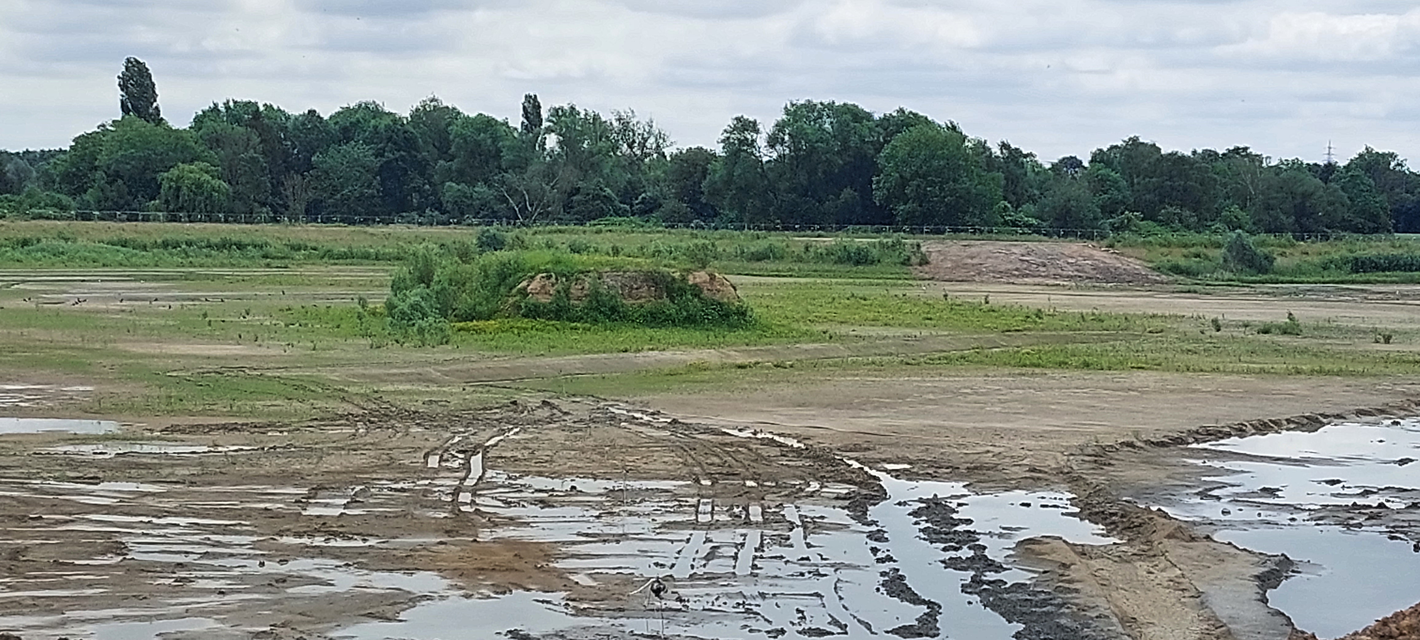 In Dortmund-Ellinghausen baut die Emschergenossenschaft zur Entlastung des Hochwasserrückhaltebeckens Emscher-Auen aktuell ein weiteres Hochwasserrückhaltebecken. Mitte 2023 soll es fertiggestellt sein.
