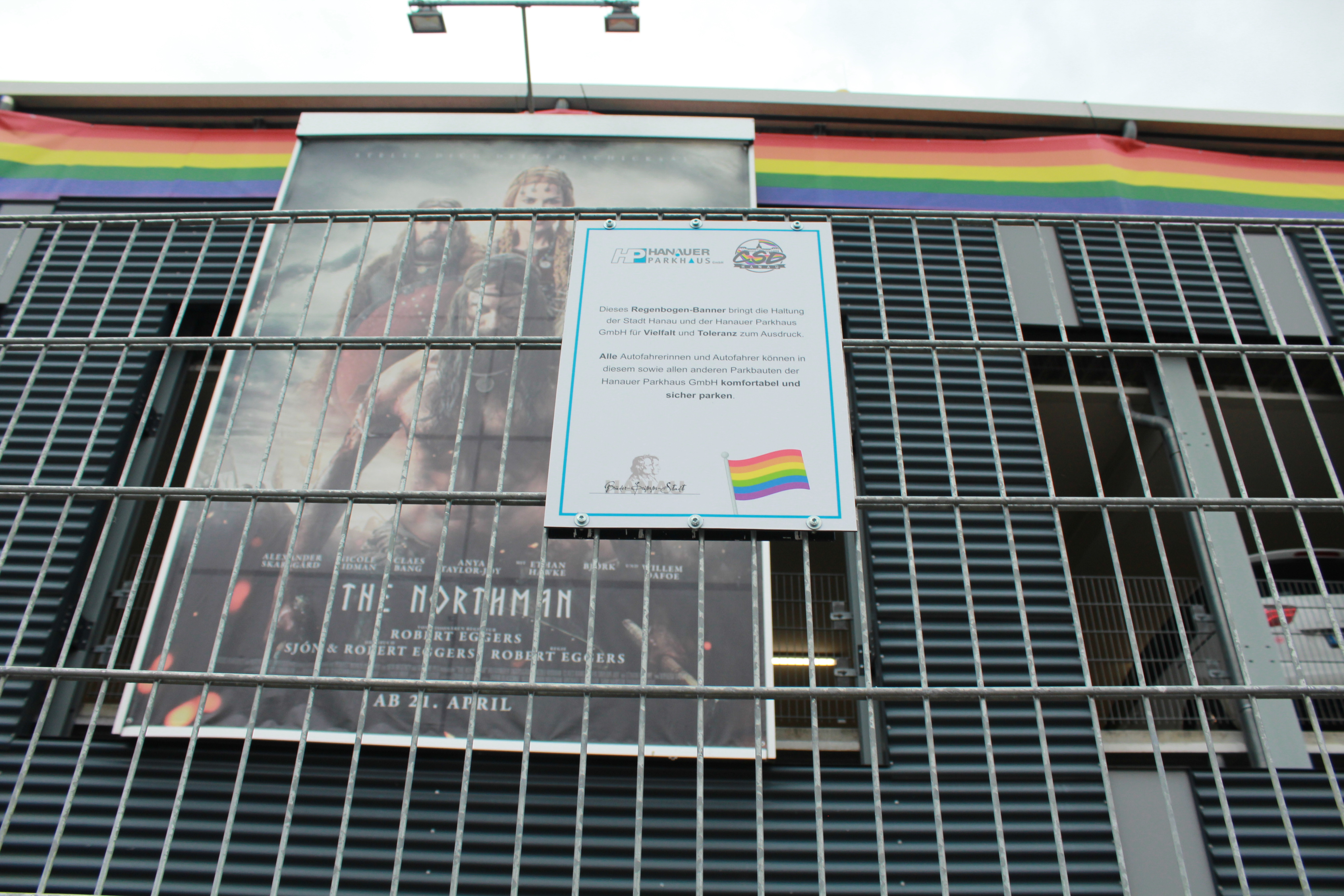 Gut sichtbar für Vorbeigehende wurde eine Infotafel aufgehängt, die Sinn und Zweck des Banners erläutert.