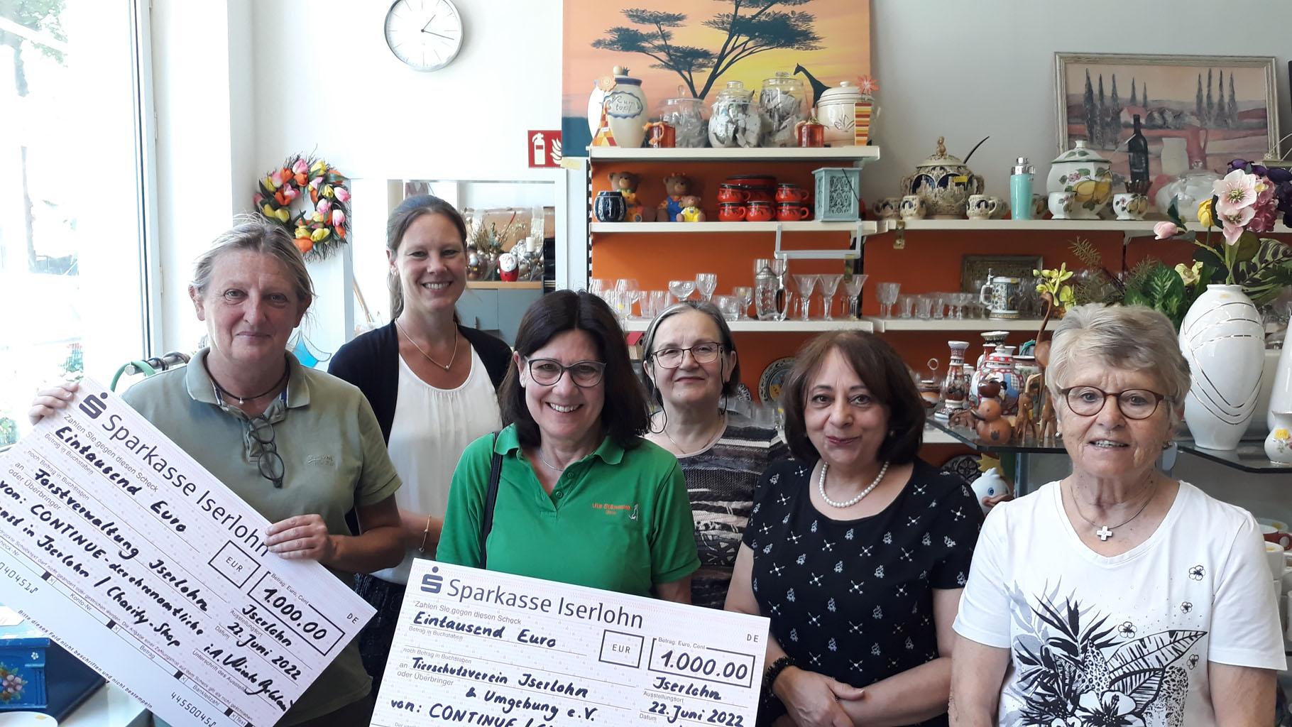 Bei der Spendenübergabe im Charity-Shop (v.l.): Stadtförsterin Julia Borghoff, Nicole Behlau, Uta Ständeke (Tierschutzverein), Margareta Krauss, Germaine Bödingmeier und Ingrid Rieger.
