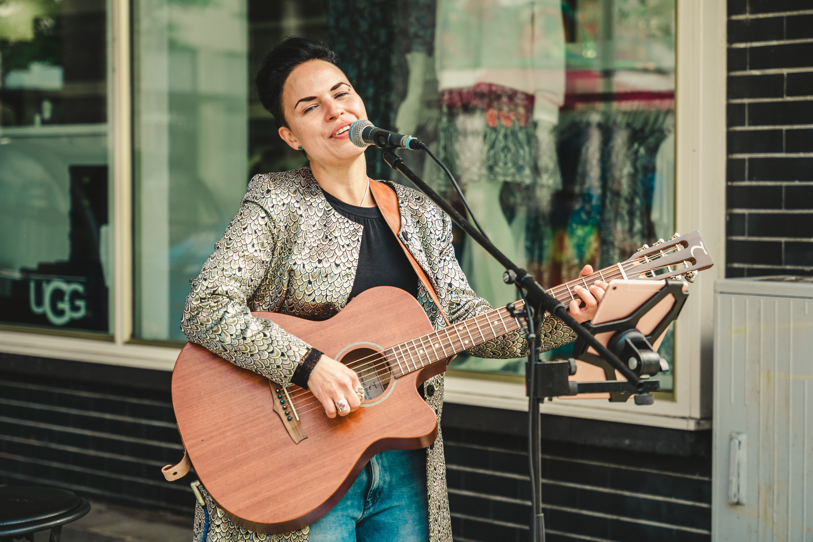 Die Musikerin "Sabho" tritt im Rahmen der Reihe "Hanau macht Musik" am Freiheitsplatz auf.