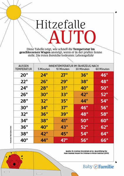 Temperatur-Entwicklung in einem geschlossenen Wagen bei Hitze.