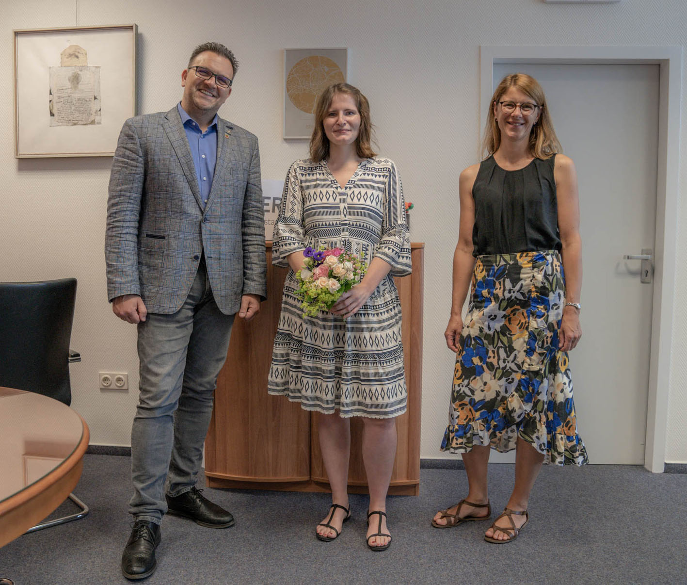 Bürgermeister Michael Joithe und Carmen Malkus freuen sich mit Franziska Goniwiecha (Mitte) über ihren sehr guten Erfolg.