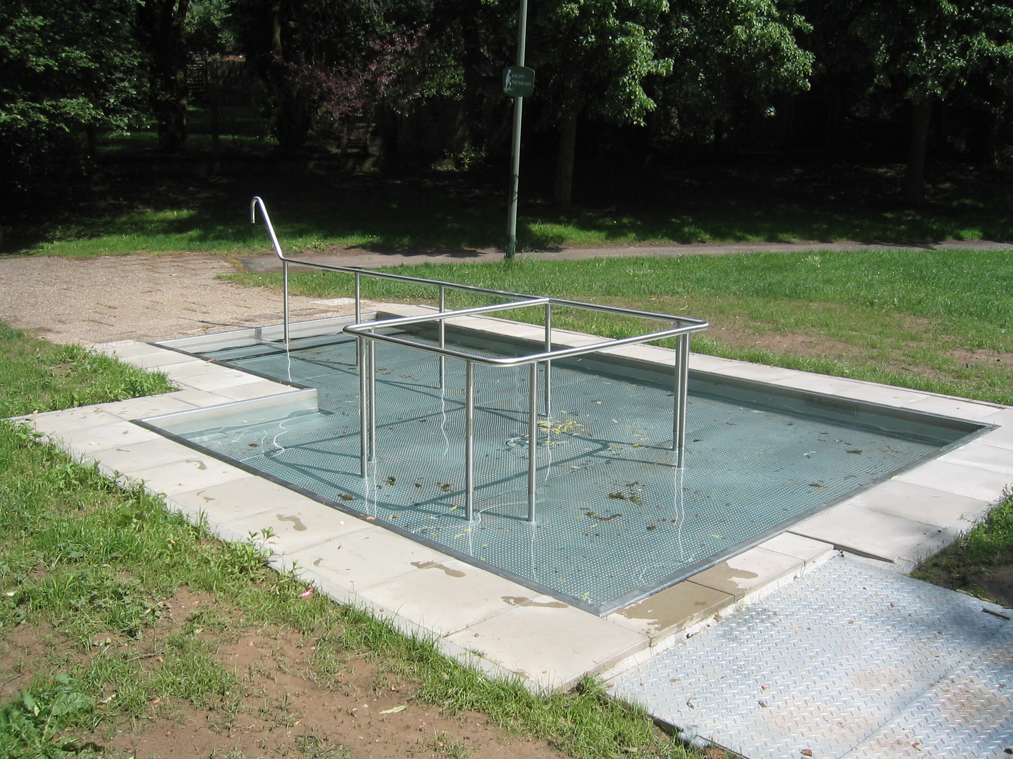 Einen derart hohen Wasserstand wie auf diesem Foto erreicht die Kneipp-Anlage in Hanau Steinheim aufgrund der hohen Temperaturen aktuell nicht. Damit einher geht eine deutlich schnellere Trübung des Wassers, die auch mit der integrierten Reinigung durch UV-Bestrahlung derzeit nicht verhindert werden kann.