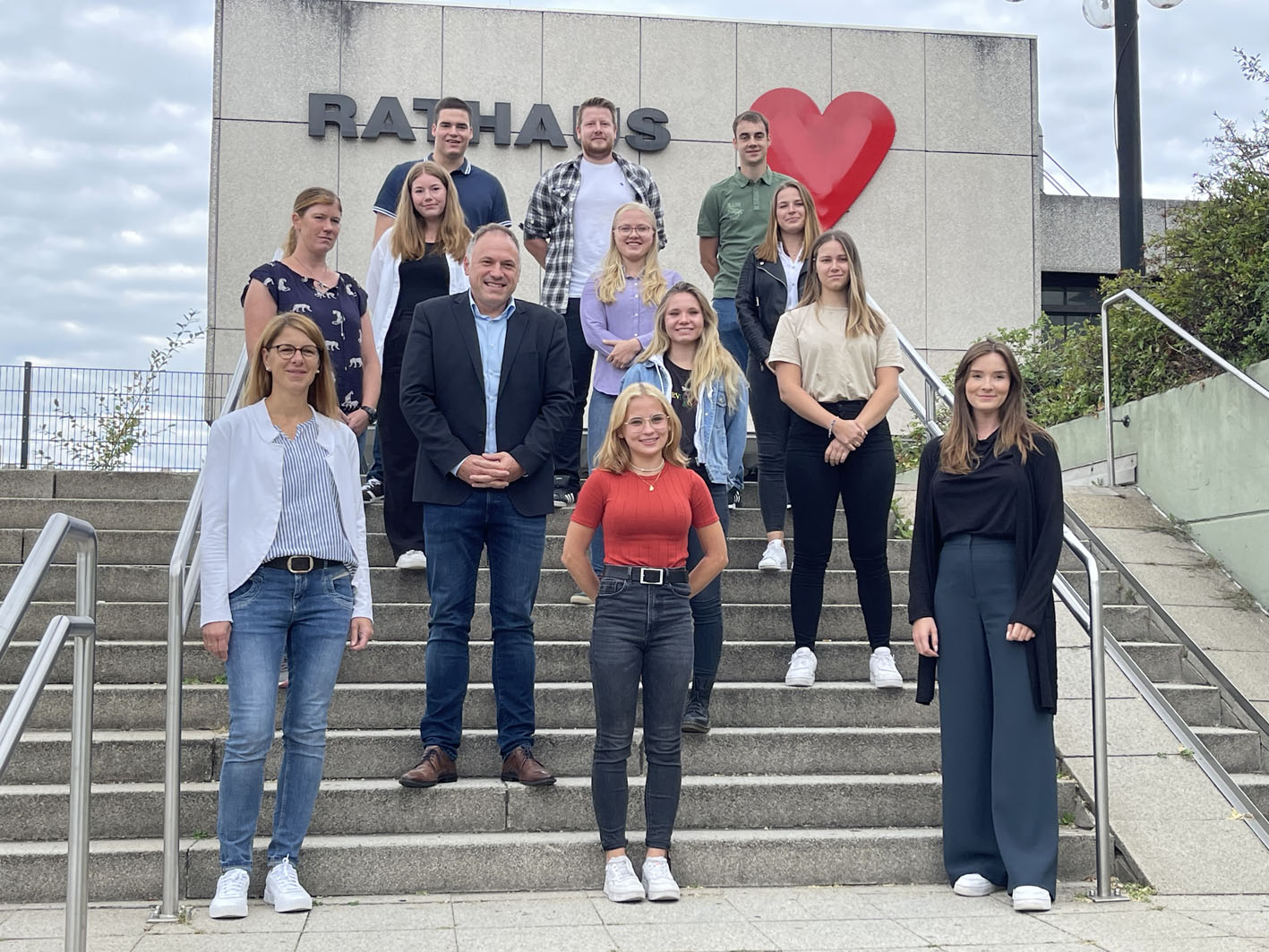 Ausbildungsleiterin Carmen Malkus und der Erste Beigeordnete Michael Wojtek (v.l.) begrüßten die neuen Auszubildenden der Stadt Iserlohn.