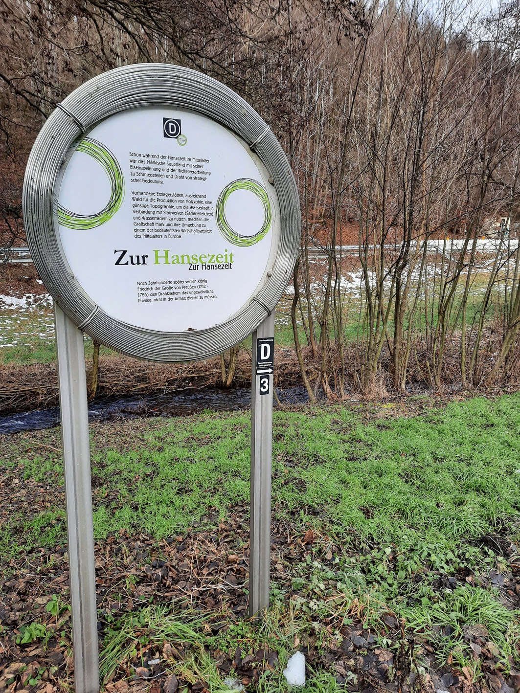 Infotafeln entlang des Drahthandelsweges beschreiben die Geschichte dieser bedeutenden Handelsroute.