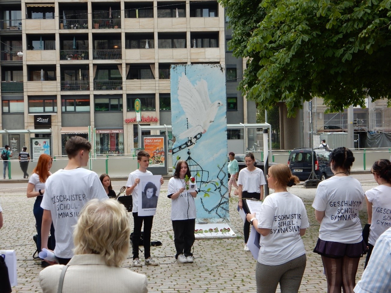 Schüler*innen des Geschwister-Scholl-Gymnasiums erinnern am 20. Juli 2021 an die Magdeburger Opfer des Eisernen Vorhangs