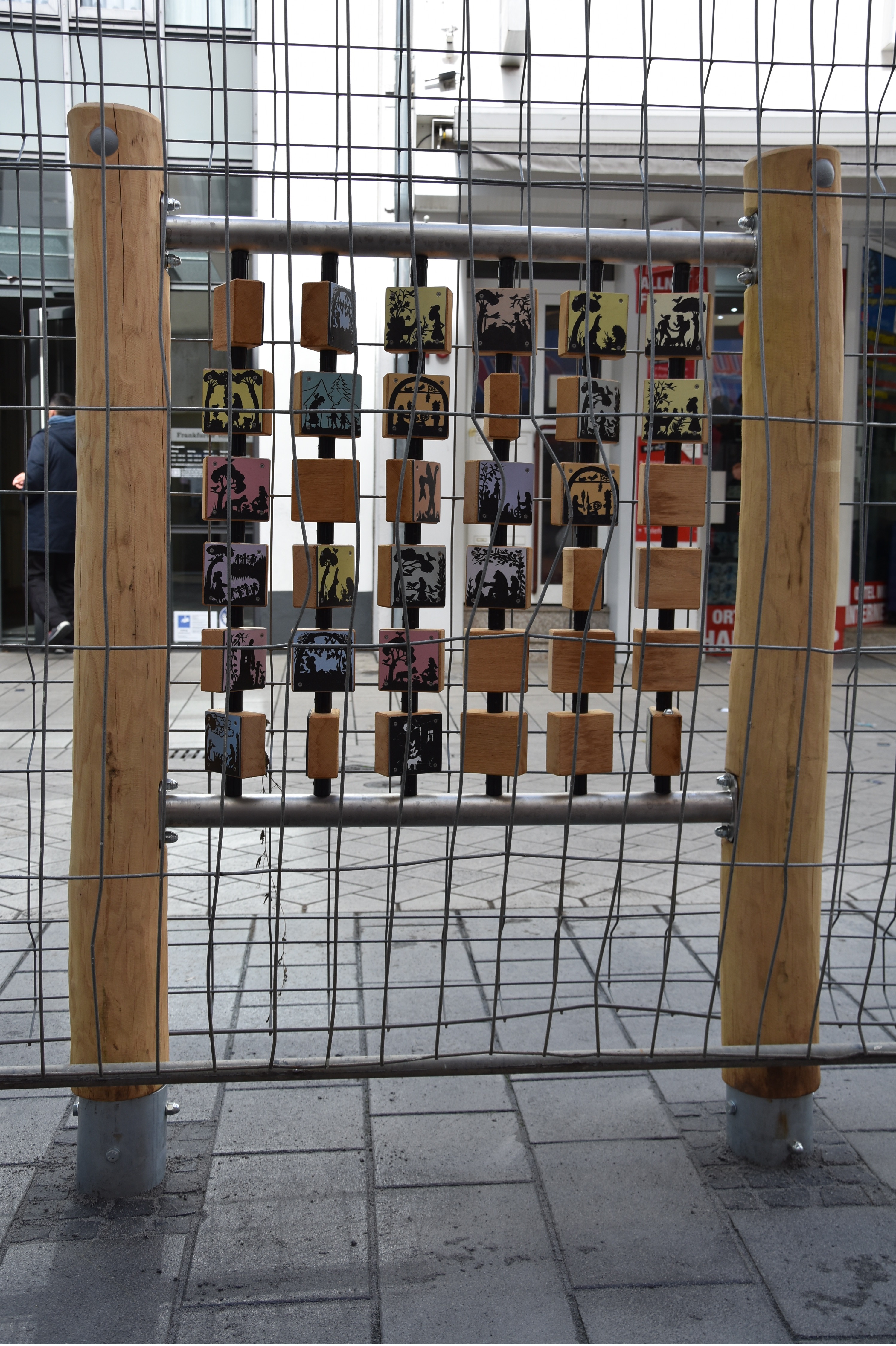 Noch bis Mitte der Woche ist das neue Spielgerät in der Innenstadt eingezäunt. Anschließend kann das Memoryspiel mit 18 Märchenmotiven dann frei verwendet werden.
