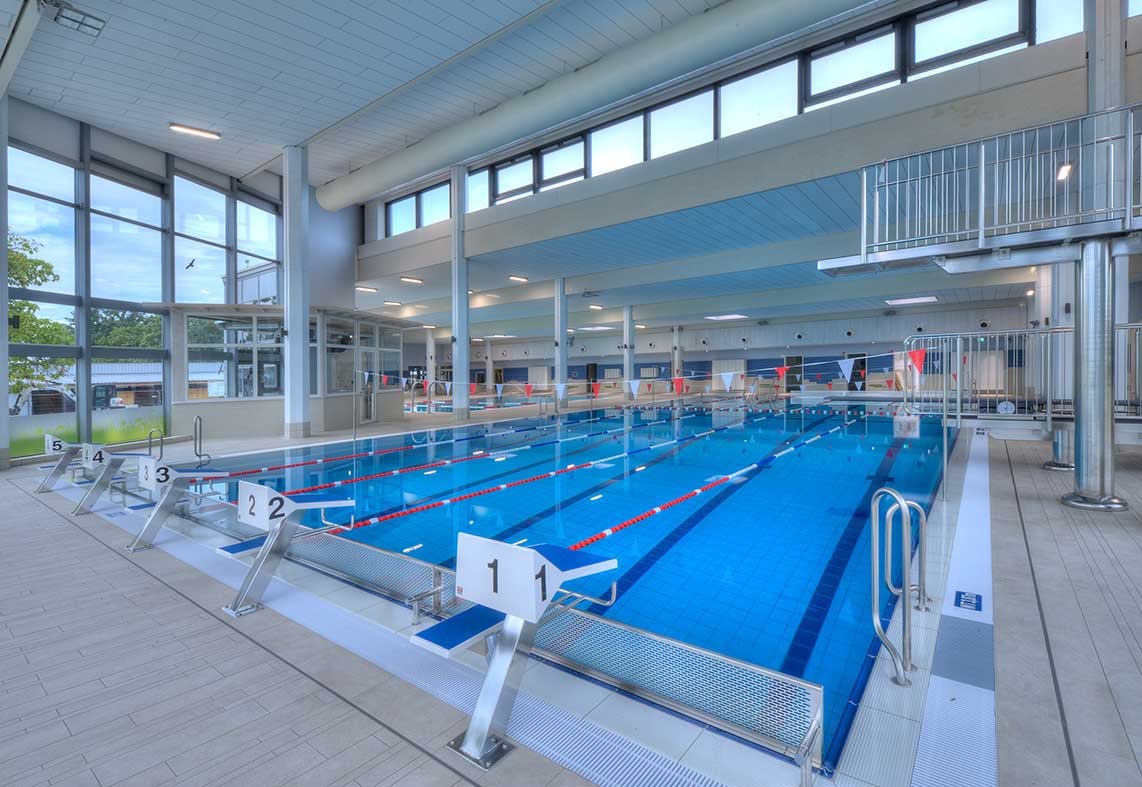 Ab 1. Oktober kann das Sportbecken mit 25 Meter langen Bahnen wieder für den Vereins- und Freizeitsport genutzt werden. Foto: Medienzentrum Hanau / Bildarchiv