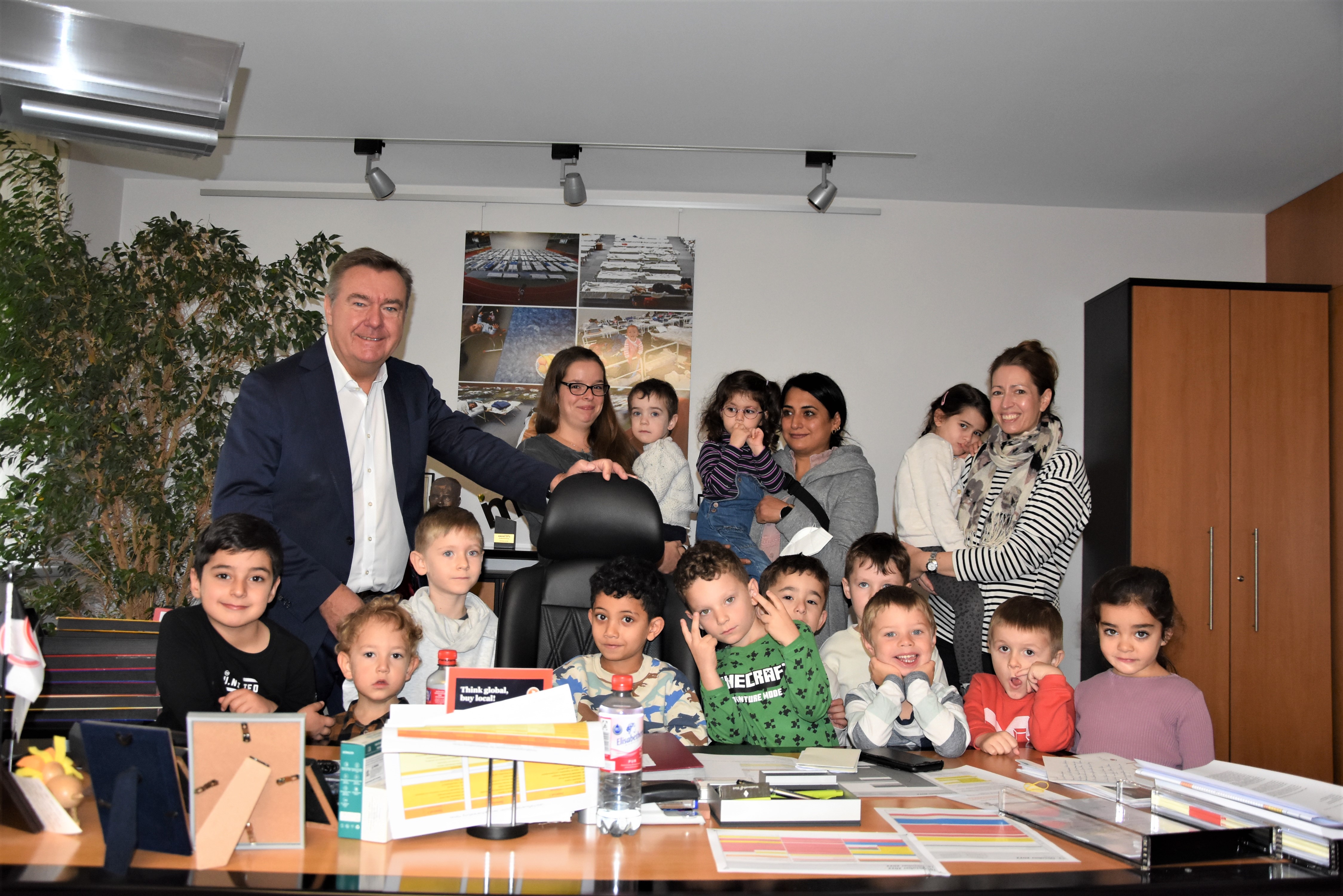 Um herauszufinden, wie groß die Berufsvielfalt in der Stadt Hanau ist, besuchen Kinder der Kita Mittelstraße derzeit verschiedene Fachstellen. In der Stadtverwaltung wurden sie dabei von Oberbürgermeister Claus Kaminsky empfangen.