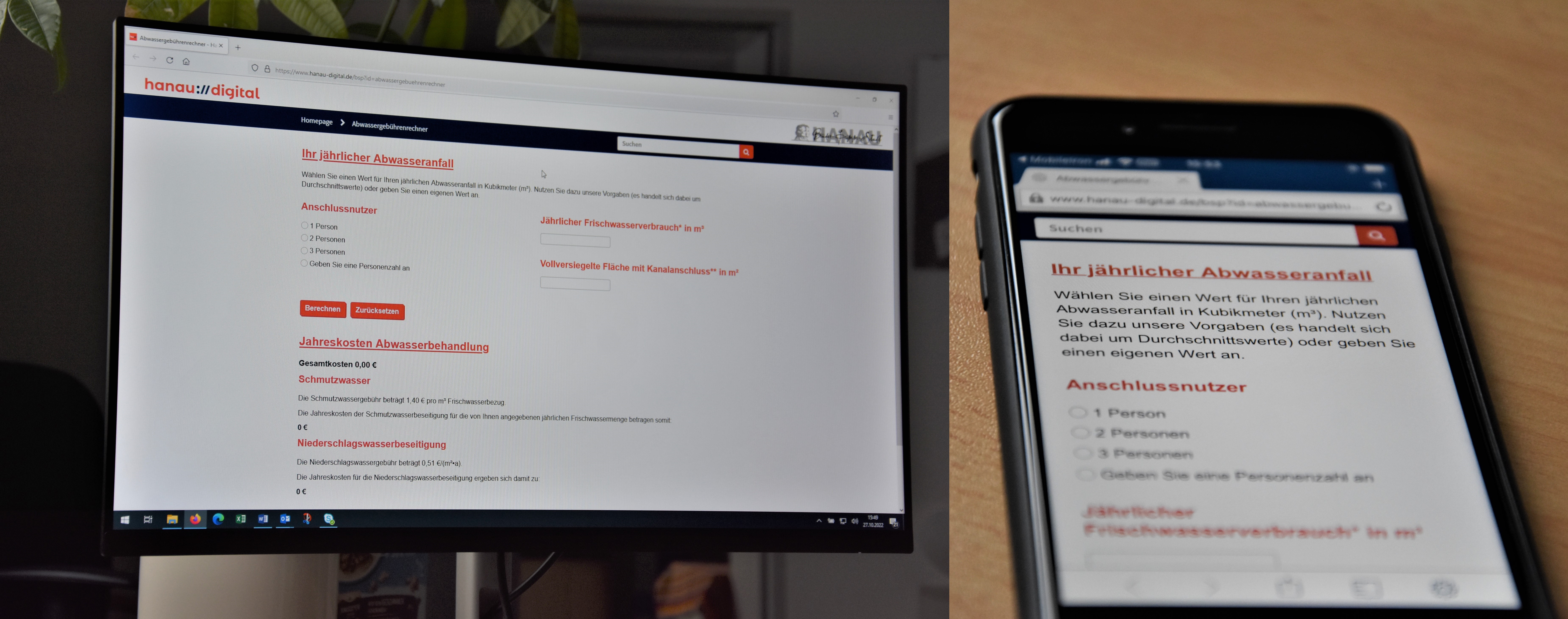 Der neue Abwassergebührenrechner der Stadt Hanau errechnet schnell und unkompliziert, wie hoch die aktuellen Gebühren ausfallen werden. Die Benutzung ist sowohl mit einem Computer als auch einem mobilen Endgerät möglich.