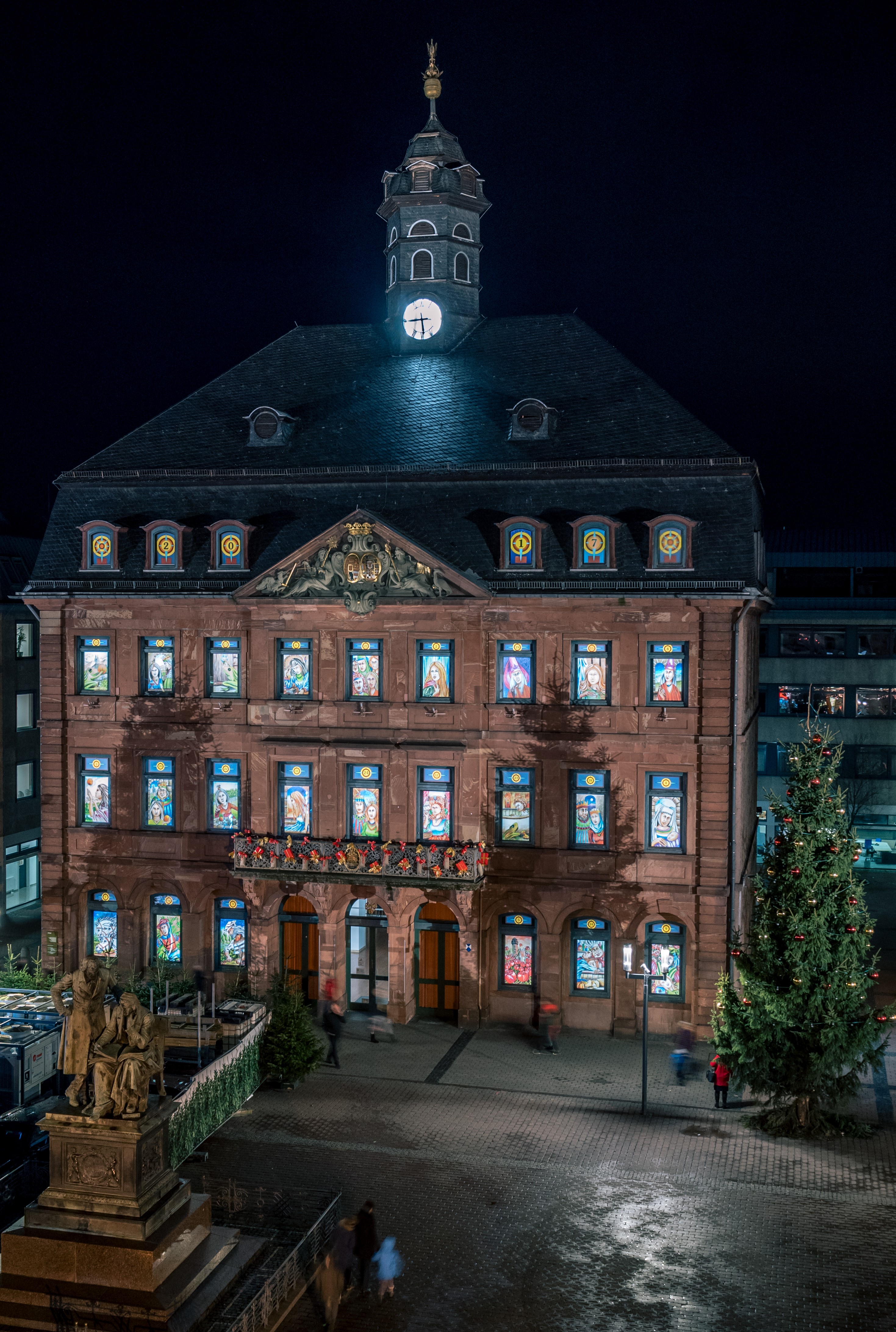 Der große Adventskalender im Neustädter Rathaus erstrahlt nach jahrelanger Umbauphase in diesem Jahr wieder.