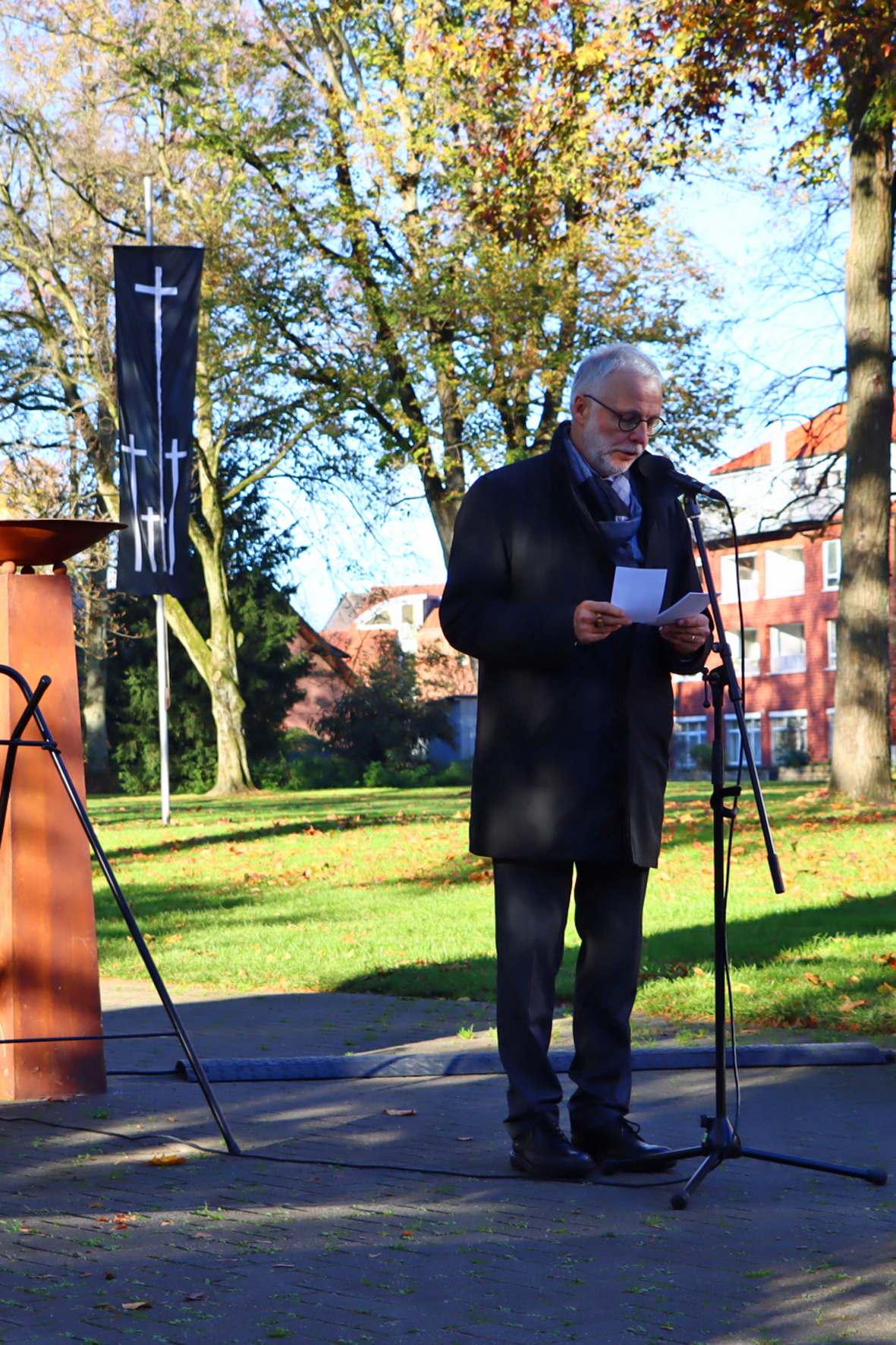Bürgermeister Matthias Müller erinnert beim diesjährigen Volkstrauertag an Opfer durch Kriege und Gewalt.