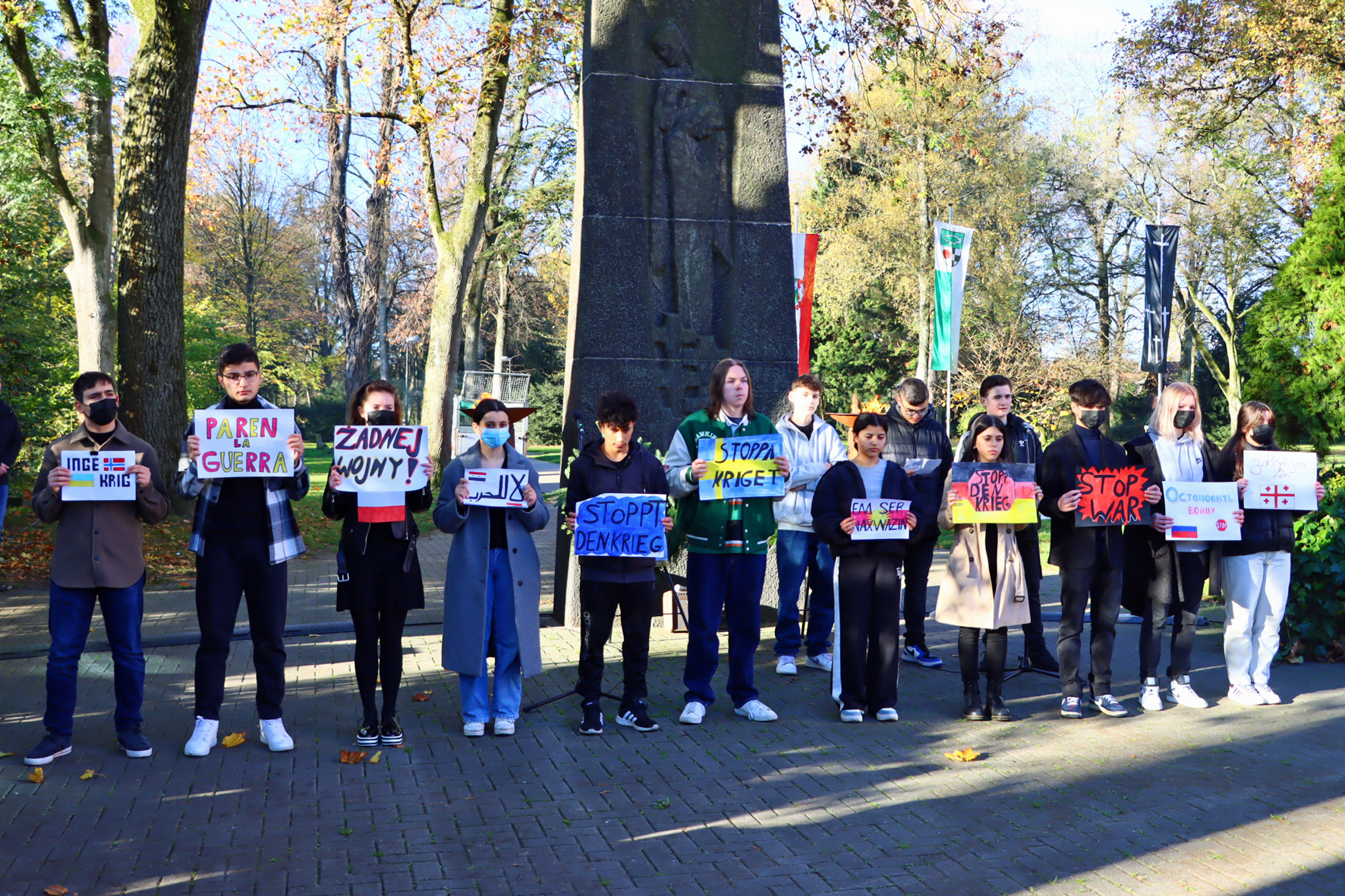 Nach der Kranzniederlegung trugen Schülerinnen und Schüler der Martin-Luther-Schule ihre Gedanken zum Volkstrauertag vor.