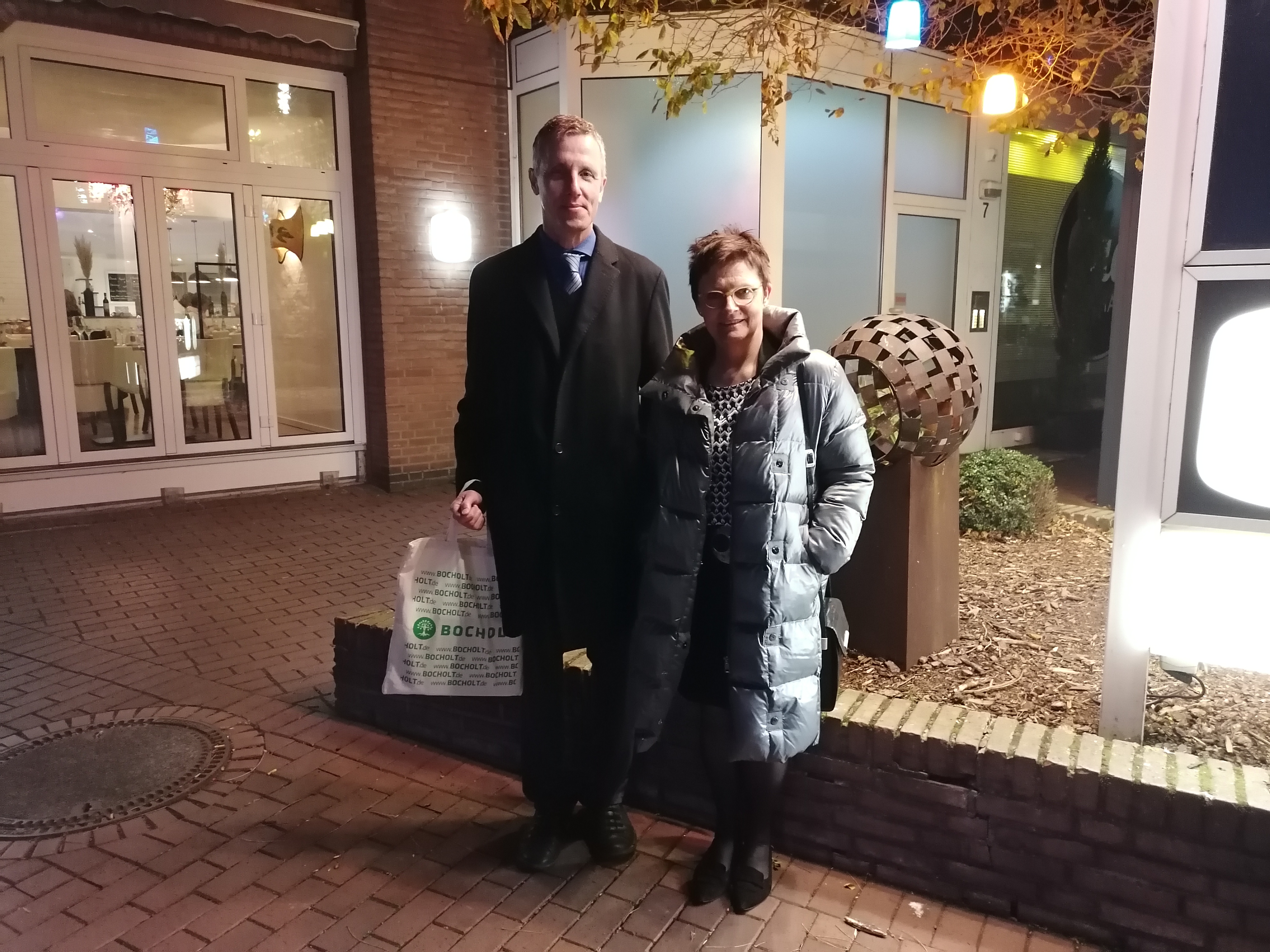Claudio Rosenberg (links) und die stellvertretende Bürgermeisterin Elisabeth Kroesen beim Empfang am 13. November 2022.