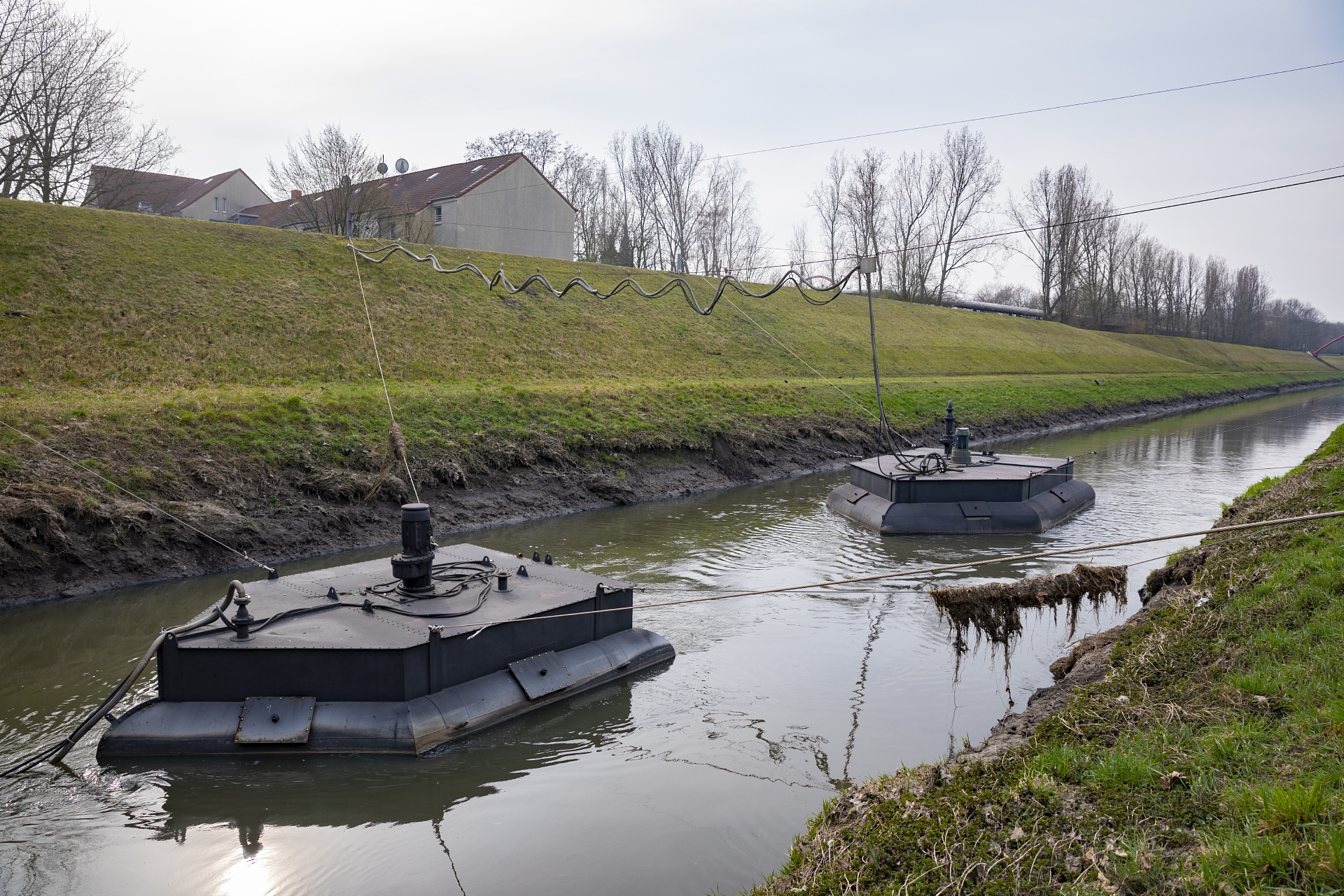 Sie schwimmen nicht mehr – Emschergenossenschaft hat Sauerstoff-Flöße (hier An der Rennbahn) gehoben.