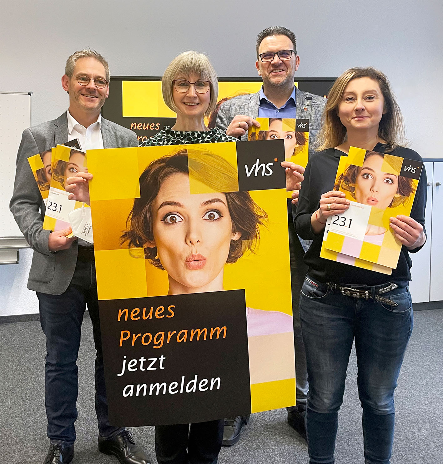 Bürgermeister und Kulturressortchef Michael Joithe (2.v.r.) stellte gemeinsam mit den Programmbereichsleitenden Frank Finkeldei und Claudia Weigel sowie Verwaltungsleiterin Karina Wiedemeyer (v.l.) das Programm für das VHS-Frühjahrssemester 2023 vor.