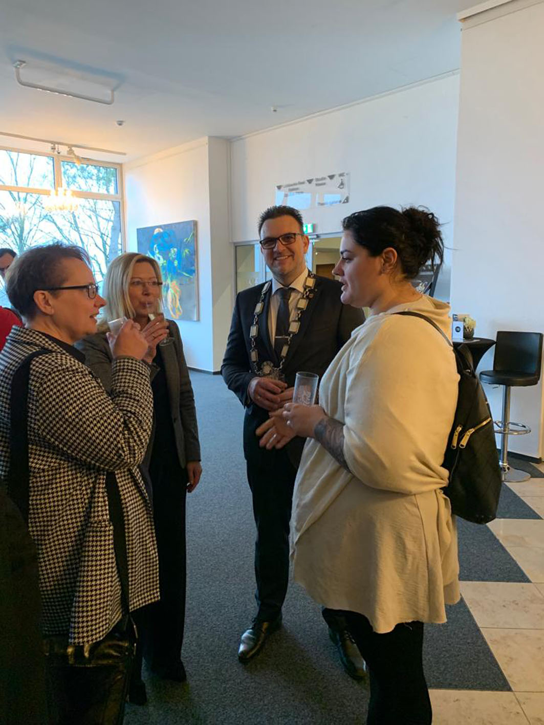 Nach dem offiziellen Teil hatten die Gäste im Foyer Gelegenheit zu Gesprächen bei einem kühlen Getränk.