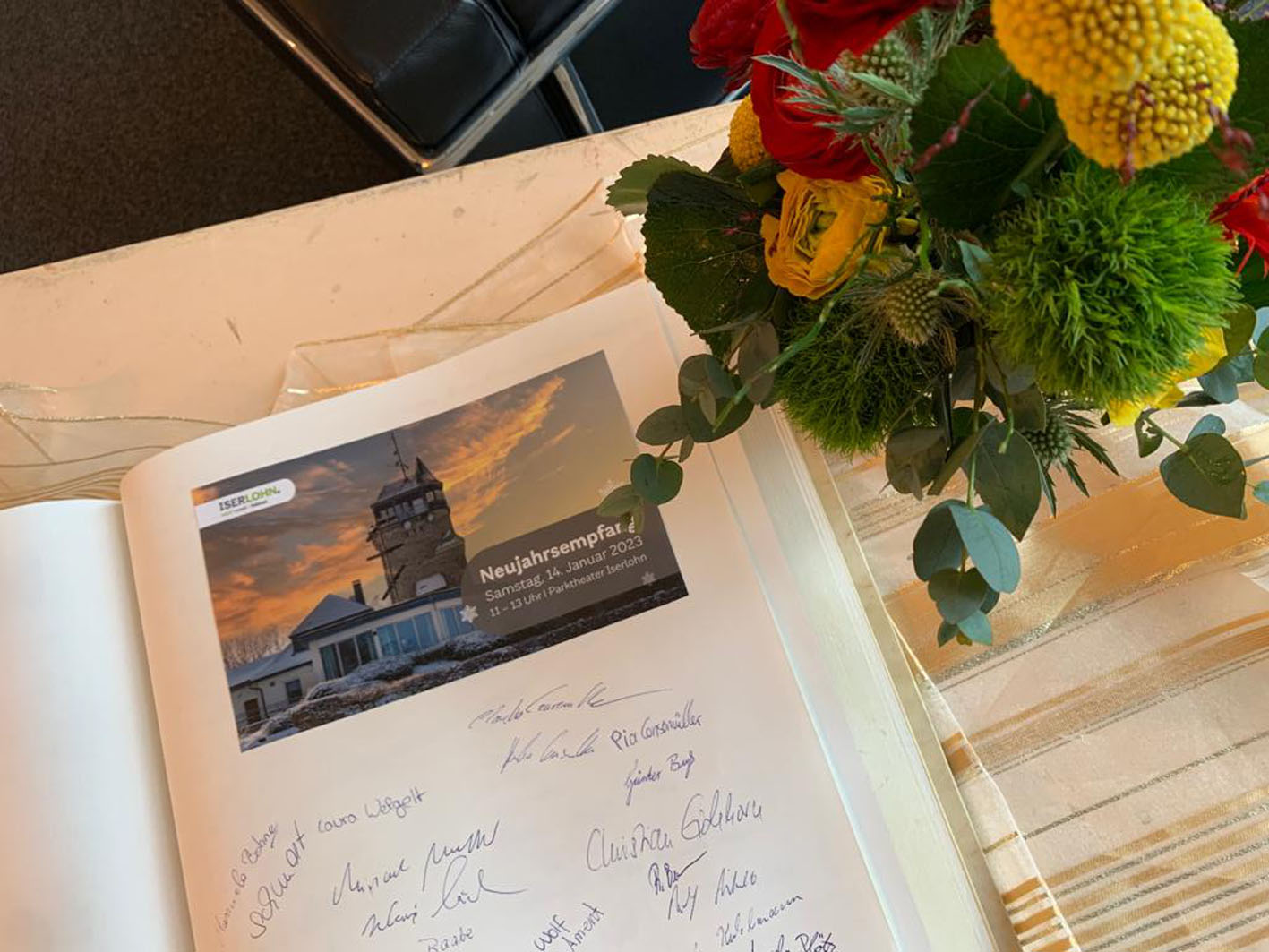 Die Besucherinnen und Besucher des Neujahrsempfangs konnten sich in das Gästebuch der Stadt Iserlohn eintragen.