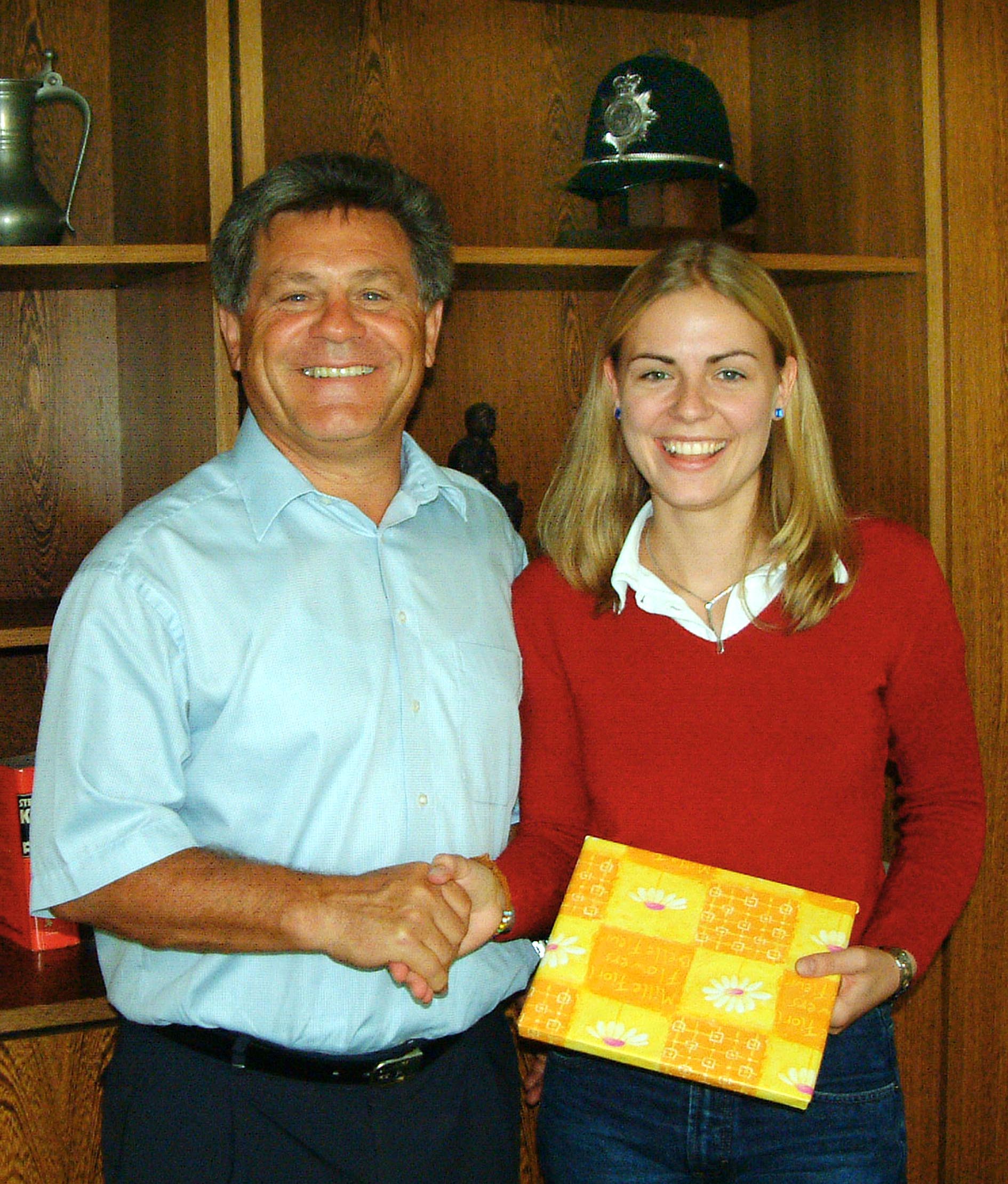 Claudia Menzel bekam vom stellv. Bürgermeister Herbert Werner ein Präsent für die Gasteltern mit auf den Weg in Hertens englische Partnerstadt.