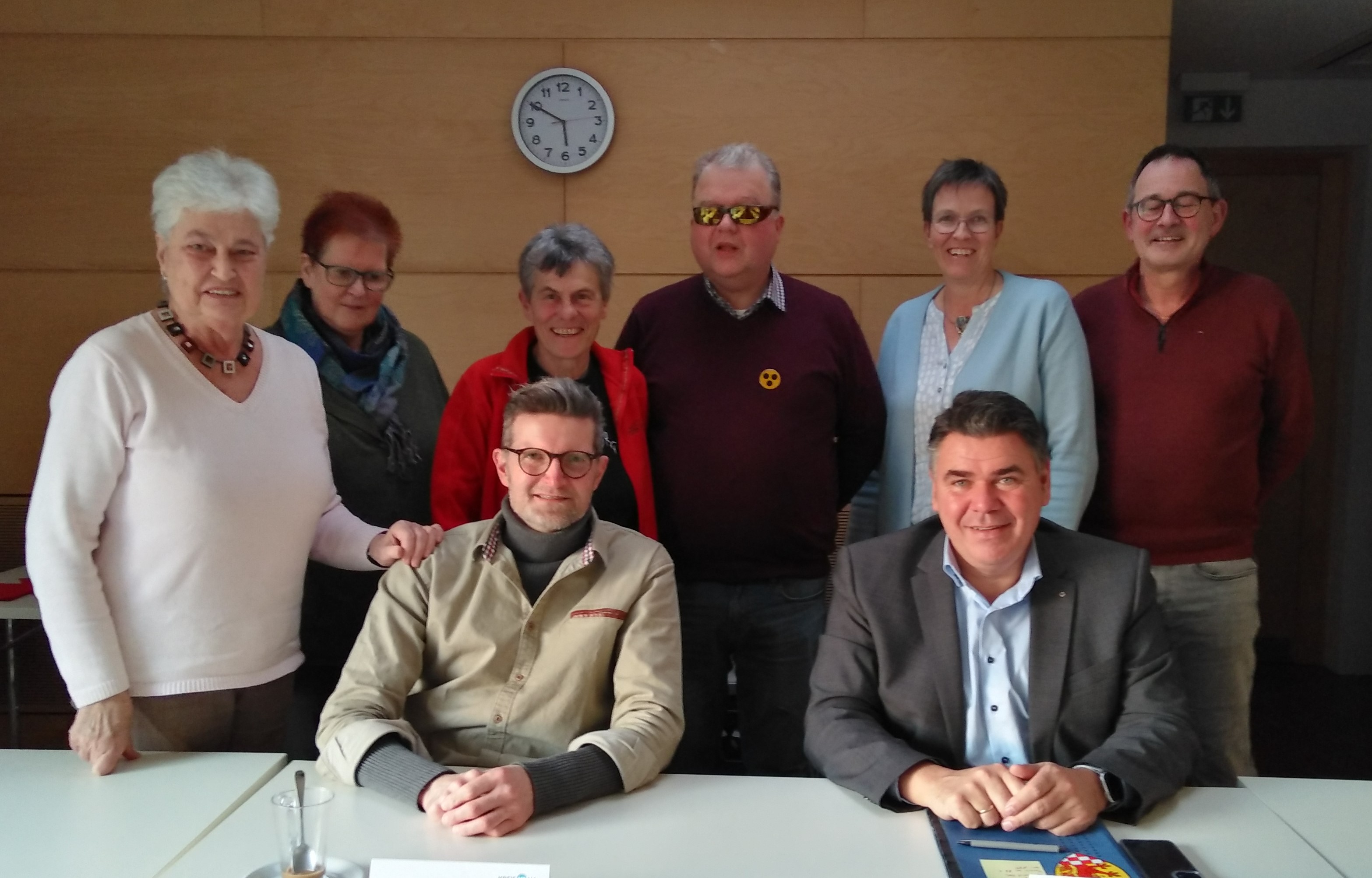 (V.l.n.r.) Anne Schrei (Sprecherrat), Bettina Borghardt (Sprecherrat), Christian Baran (Sprecherrat), Birgit Eberlein (Sprecherrat), Frank Vehlow (Sprecherrat), Birgit Kollmann (Sachgebietsleitung Planung und Koordination), Landrat Mario Löhr, Andreas Bünder (Sprecherrat). Foto: Kreis Unna