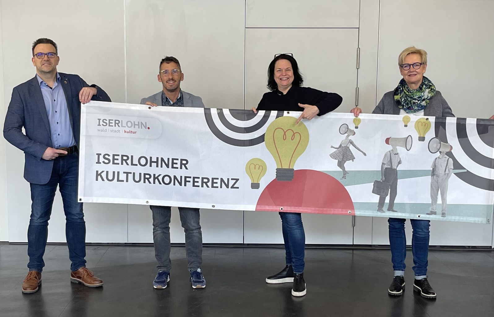 Laden ein zur Ersten Iserlohner Kulturkonferenz am 19. April: Kulturausschussvorsitzende Eva Kirchhoff (r.) und ihre Stellvertreterin Anja Ihme sowie Bürgermeister Michael Joithe (l.) und Kulturreferatsleiter Matthias Quaschnik.