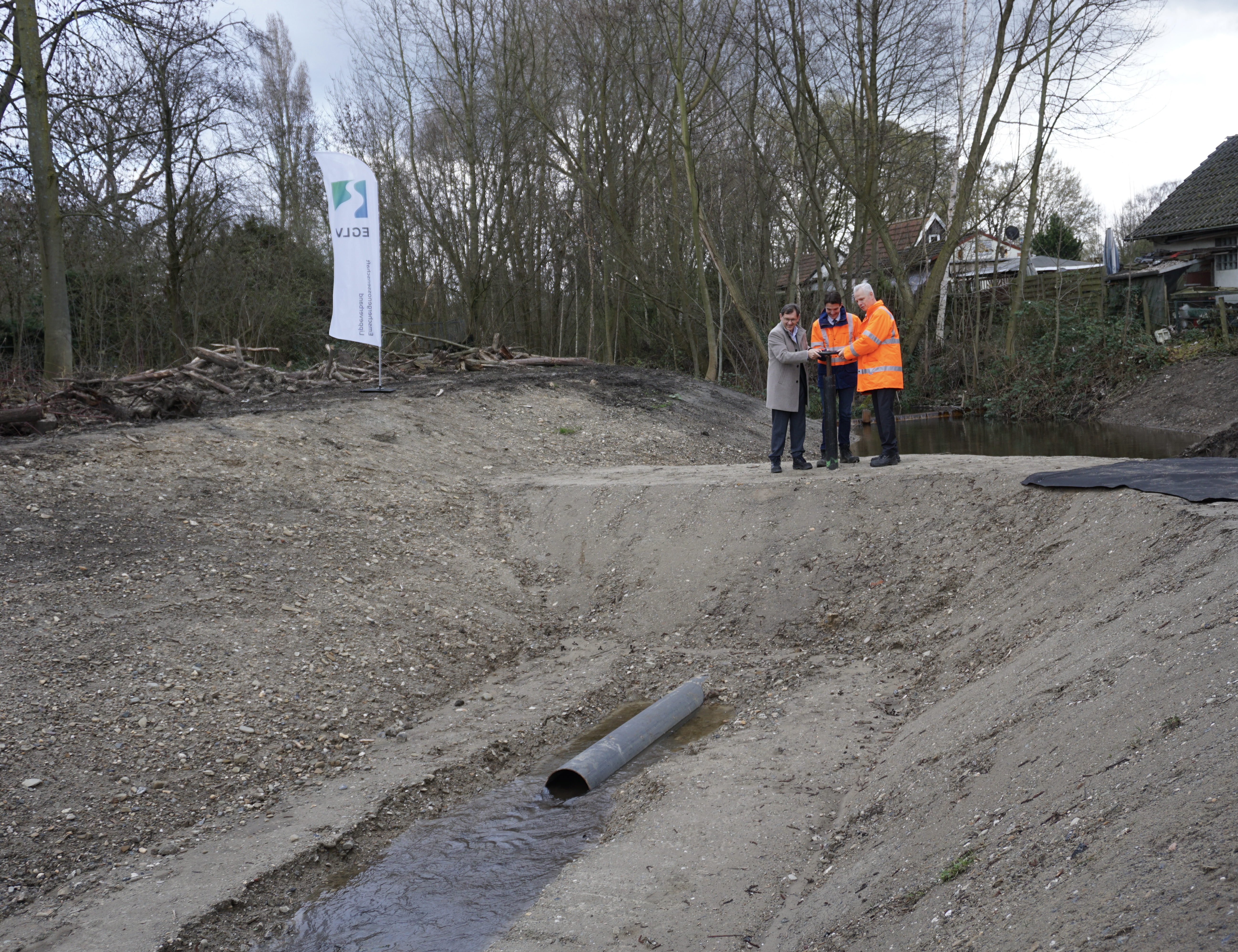 Hernes Oberbürgermeister und Ratsvorsitzender der Emschergenossenschaft Dr. Frank Dudda, der Vorstandsvorsitzende der Emschergenossenschaft Prof. Dr. Uli Paetzel und der Technische Vorstand Dr. Frank Obenaus gaben heute den Startschuss für die Flutung der neuen Gewässertrasse des Ostbachs.